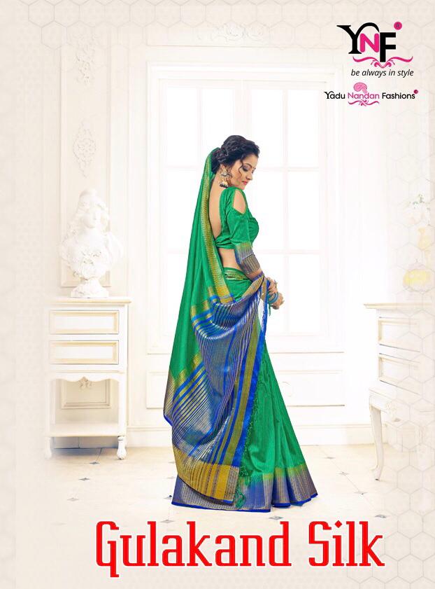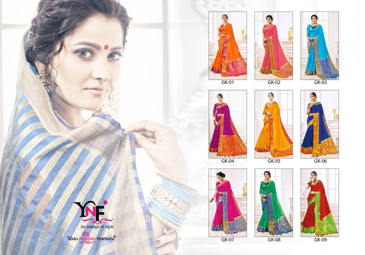 Buy Online Gulakand Silk By Yadunandan Fashion 01 Series Fancy Nylone Silk Saree Collection Wholesale Dealer Surat 9 Pcs of Full Catalogue at Wholesale Price. Looking for Gulakand Silk By Yadunandan Fashion 01 Series Fancy Nylone Silk Saree Collection Wholesale Dealer Surat Full Catalouge at Best Price? Buy Now Gulakand Silk By Yadunandan Fashion 01 Series Fancy Nylone Silk Saree Collection Wholesale Dealer Surat at Wholesale Rate of Rs 5400 with Total 9 Pcs from authroized dealer and supplier of YADU NANDAN FASHION Brand. Cost of Each piece is just only Rs 600 which is very low and affordable price to resale the product in your retail store ,This is Surat based Wholesale Supplier & Dealer of YADU NANDAN FASHION Brand. Click on Brand name to Know more about YADU NANDAN FASHION Brand's products.Call or Whatsapp on 9898838984 for booking or enquiry