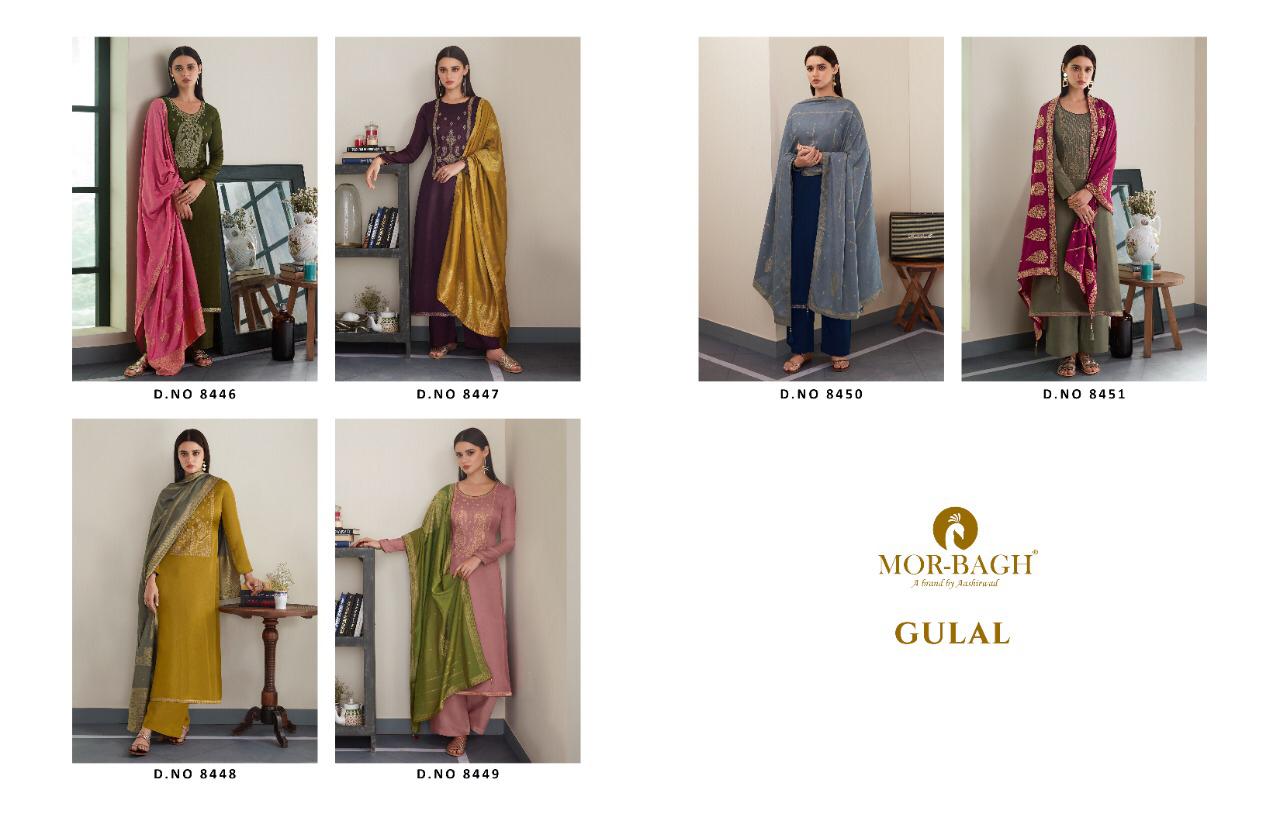 *AASHIRWAD * Present new Catlog ... *GULAL (6 pcs )* ?Top- PREMIUM SILK ?Bottom. JAM SATIN ?Duptta .. VISCOSE JACQURED ... ???Price ..1495 (GST 5 percent extra) * set to set * Dispatching in 3 days !!! |
