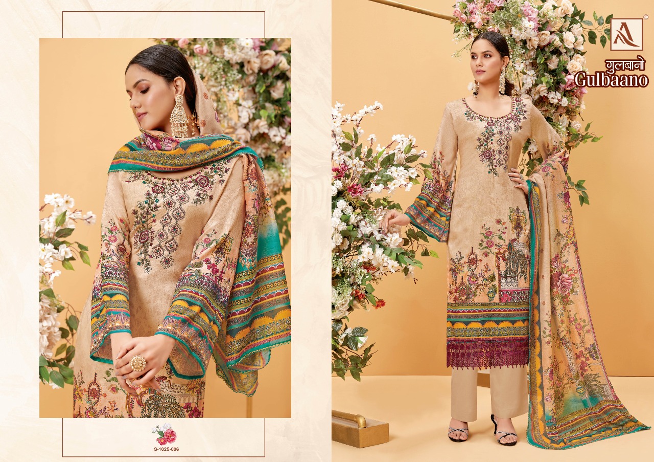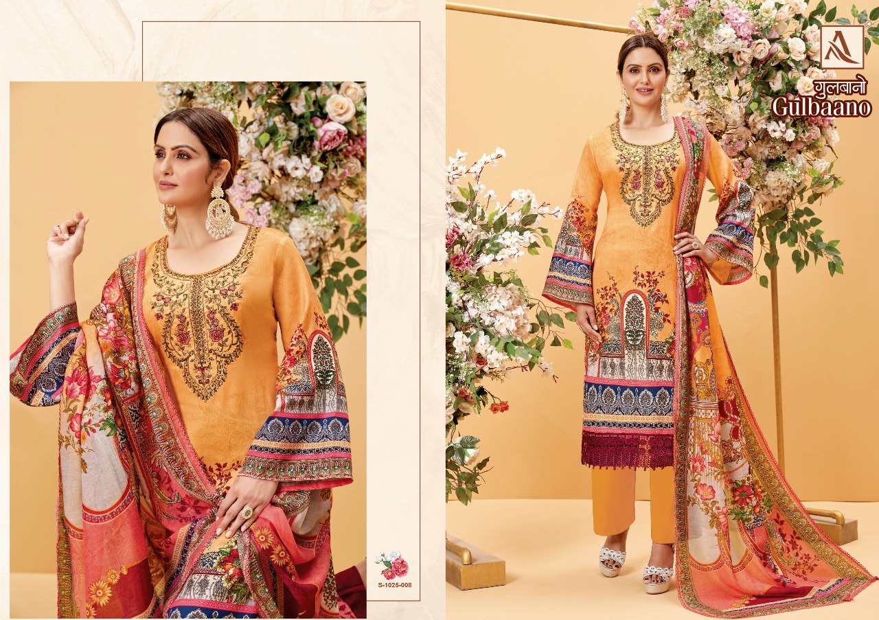 Buy Online Gulbaano By Alok Suit Wholesale Supplier Traders In Surat 8 Pcs of Full Catalogue at Wholesale Price. Looking for Gulbaano By Alok Suit Wholesale Supplier Traders In Surat Full Catalouge at Best Price? Buy Now Gulbaano By Alok Suit Wholesale Supplier Traders In Surat at Wholesale Rate of Rs 6000 with Total 8 Pcs from authroized dealer and supplier of Brand. Cost of Each piece is just only Rs 750 which is very low and affordable price to resale the product in your retail store ,This is Surat based Wholesale Supplier & Dealer of Brand. Click on Brand name to Know more about Brand's products.Call or Whatsapp on 9898838984 for booking or enquiry