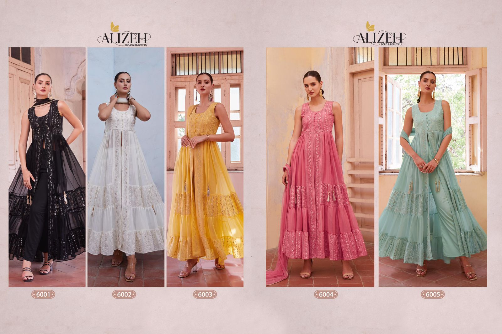 Buy Online Gulbahar Vol 4 Series 6001 To 6005 By Alizeh Elements Of Traditional Indian Clothing With Western Style 5 Pcs of Full Catalogue at Wholesale Price. Looking for Gulbahar Vol 4 Series 6001 To 6005 By Alizeh Elements Of Traditional Indian Clothing With Western Style Full Catalouge at Best Price? Buy Now Gulbahar Vol 4 Series 6001 To 6005 By Alizeh Elements Of Traditional Indian Clothing With Western Style at Wholesale Rate of Rs 13975 with Total 5 Pcs from authroized dealer and supplier of Brand. Cost of Each piece is just only Rs 2795 which is very low and affordable price to resale the product in your retail store ,This is Surat based Wholesale Supplier & Dealer of Brand. Click on Brand name to Know more about Brand's products.Call or Whatsapp on 9898838984 for booking or enquiry