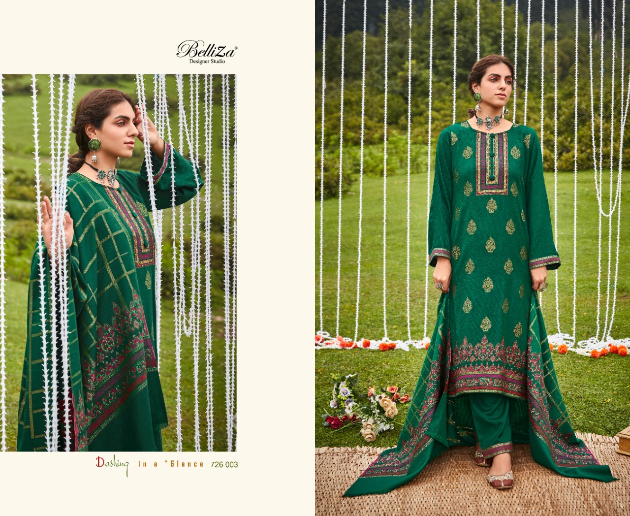 # GULBANO by BELLIZA # KAANI WEAVING JAQUARD # 100% ORIGINAL PASHMINA _*......BelliZa DesigNer StuDio......*_ _presents_ *"GULBANO"* _...exclusive designer collection..._ ?Top: *100% Pure Original Wool Pashmina Kaani Weaving Jaquard* (2.50 mtrs apx) ?Dupatta: *100% Pure Original Wool Pashmina Kaani Weaving Jaquard Pallu Shawl* (2.30 mtrs apx) ?Bottom: Pure Pashmina Salwar. (3 mtrs apx) ?Pcs: 08 ? Rate: 1095/- # Book Now |