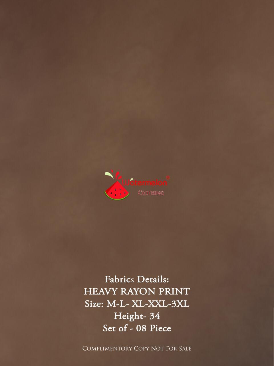 *Watermelon* ® Catalog name : *GULKAND* Fabric : *HEAVY RAYON PRINT* Design : *8* Length: *34* Size : *M-L-XL- XXL-3XL* Rate:- *339/-* Set To Set. GST 5 Percent Extra. Delivery- Running |