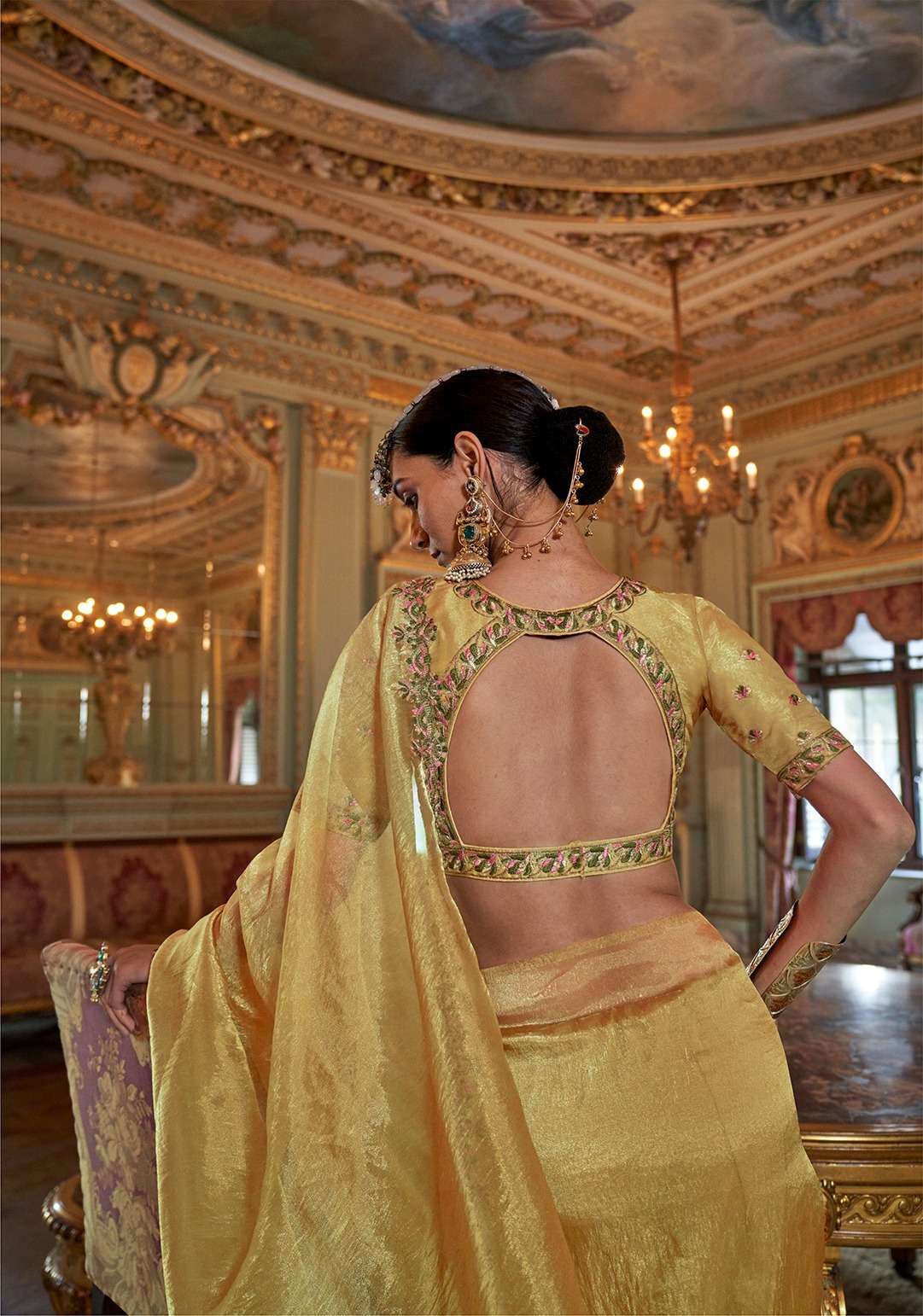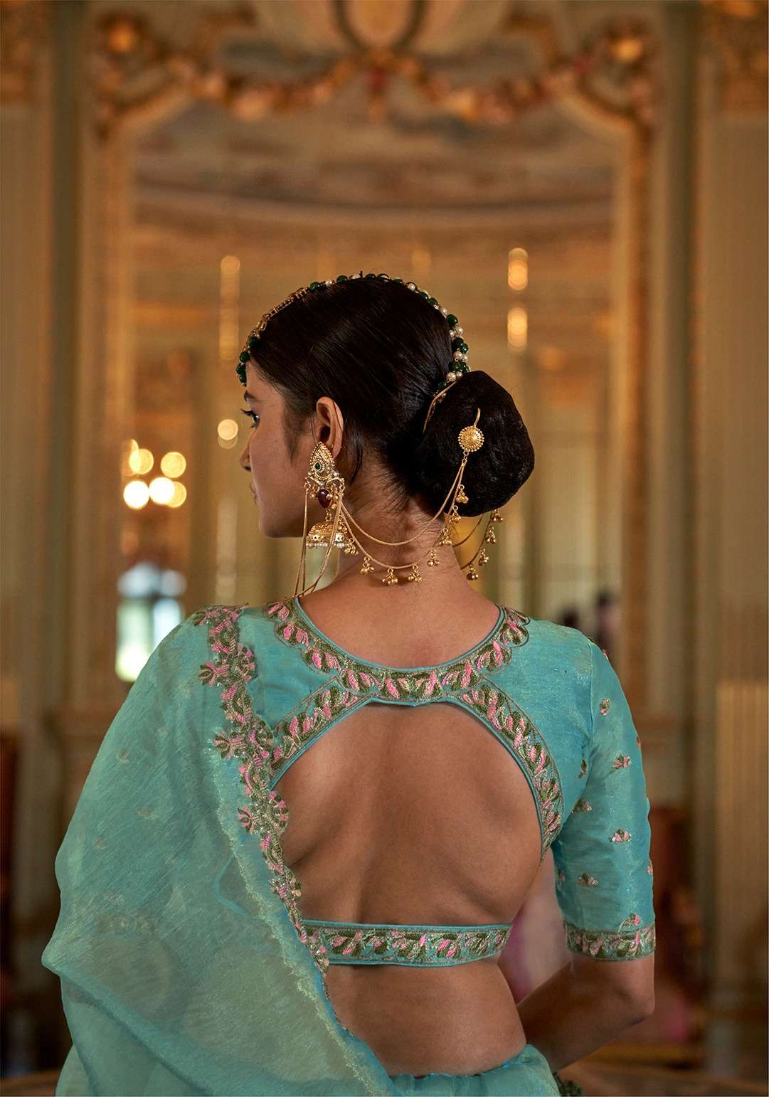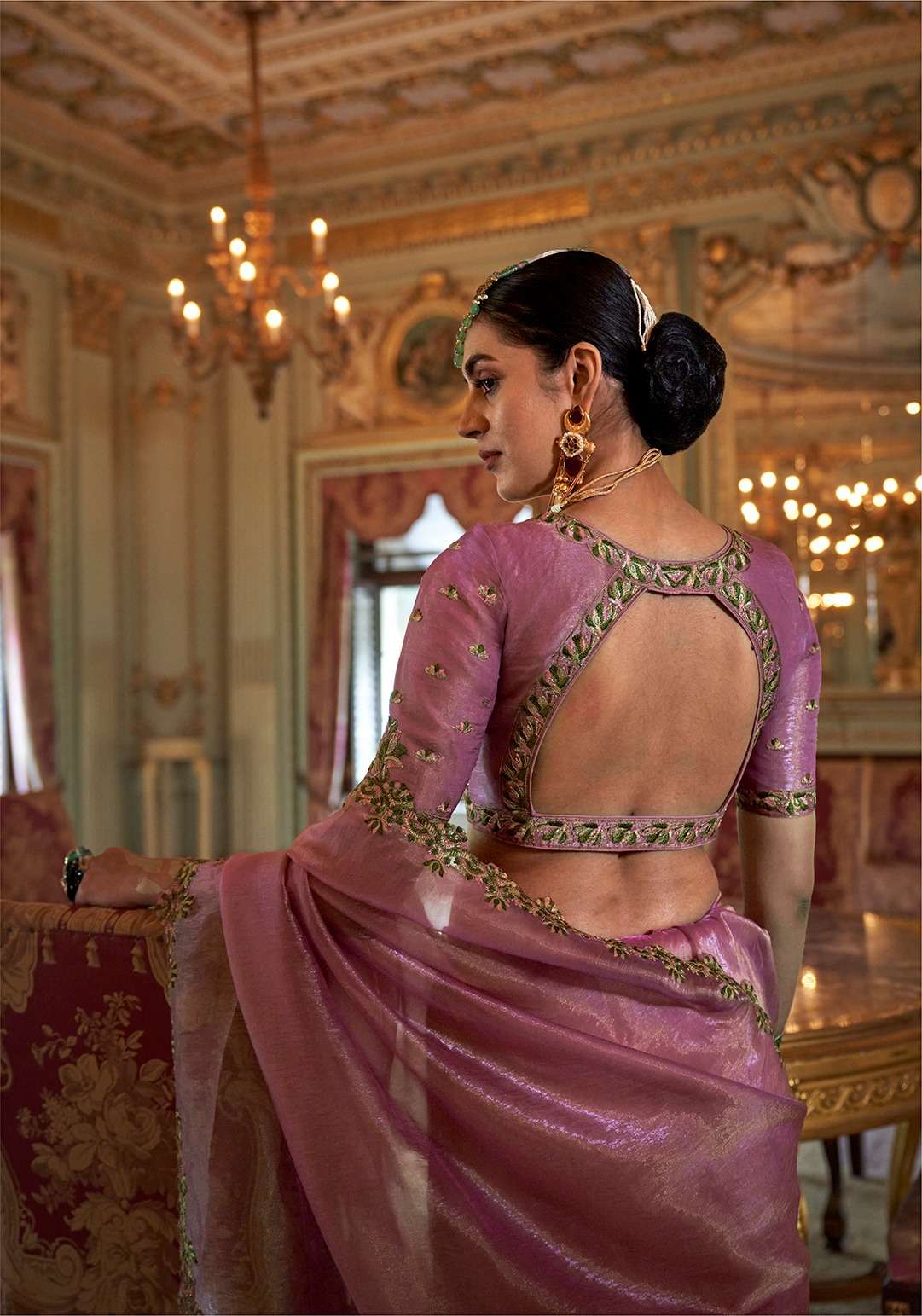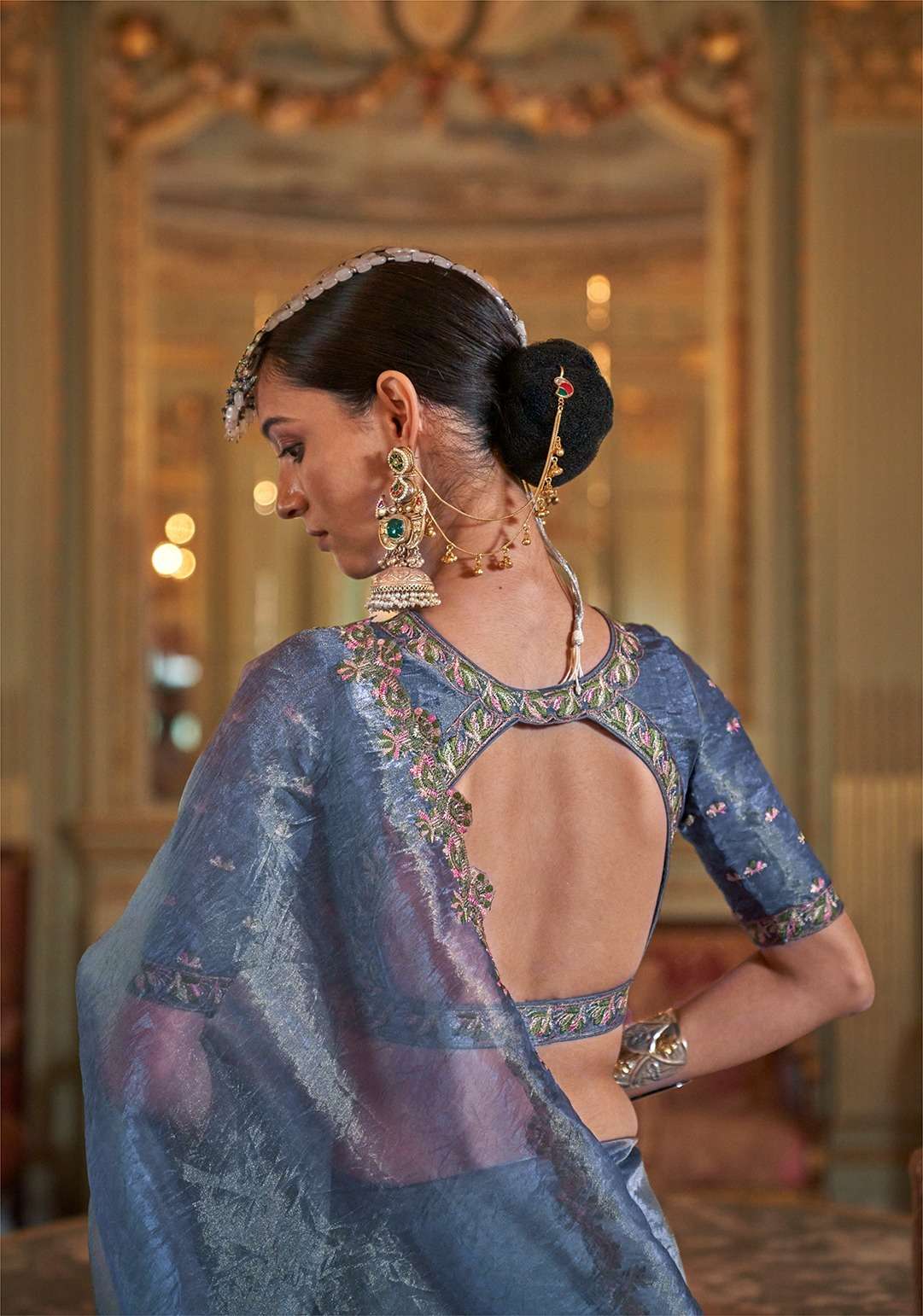 SAREE FABRIC- SOFT TISSUE MULTI THREAD EMBROIDERY WORK BLOUSE-MATCHING SOFT TISSUE WITH MULTI THREAD EMBROIDERY WORK