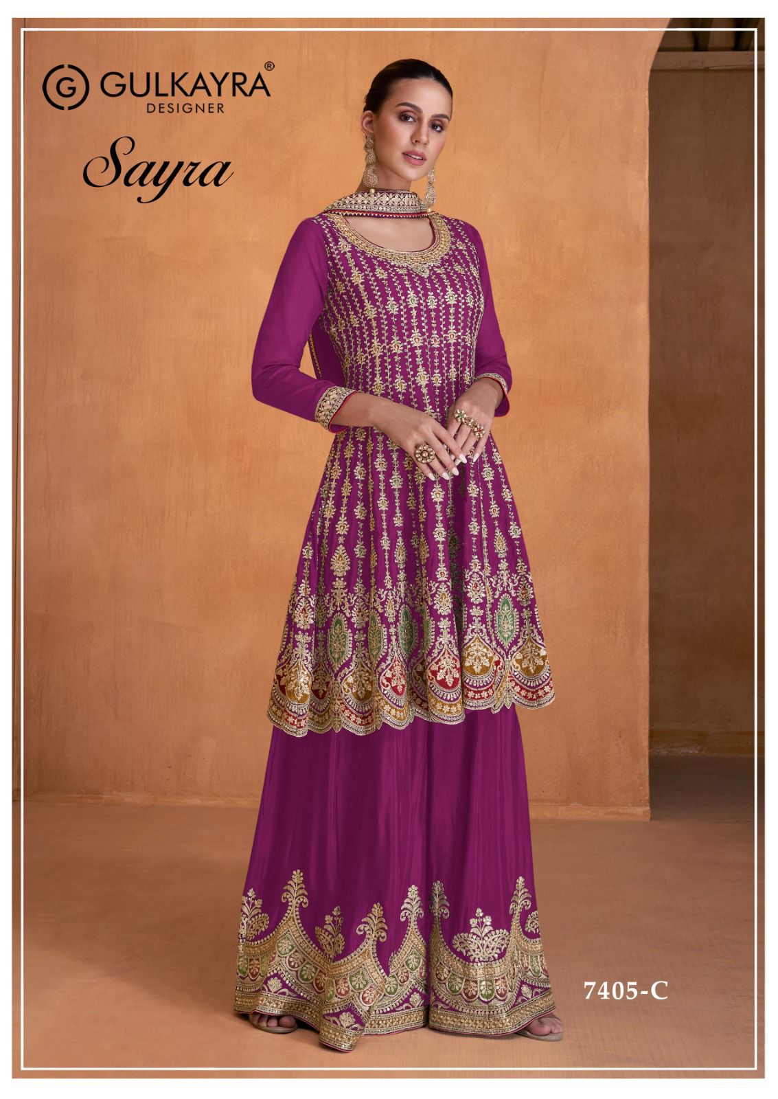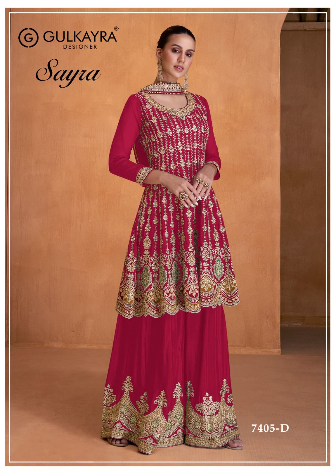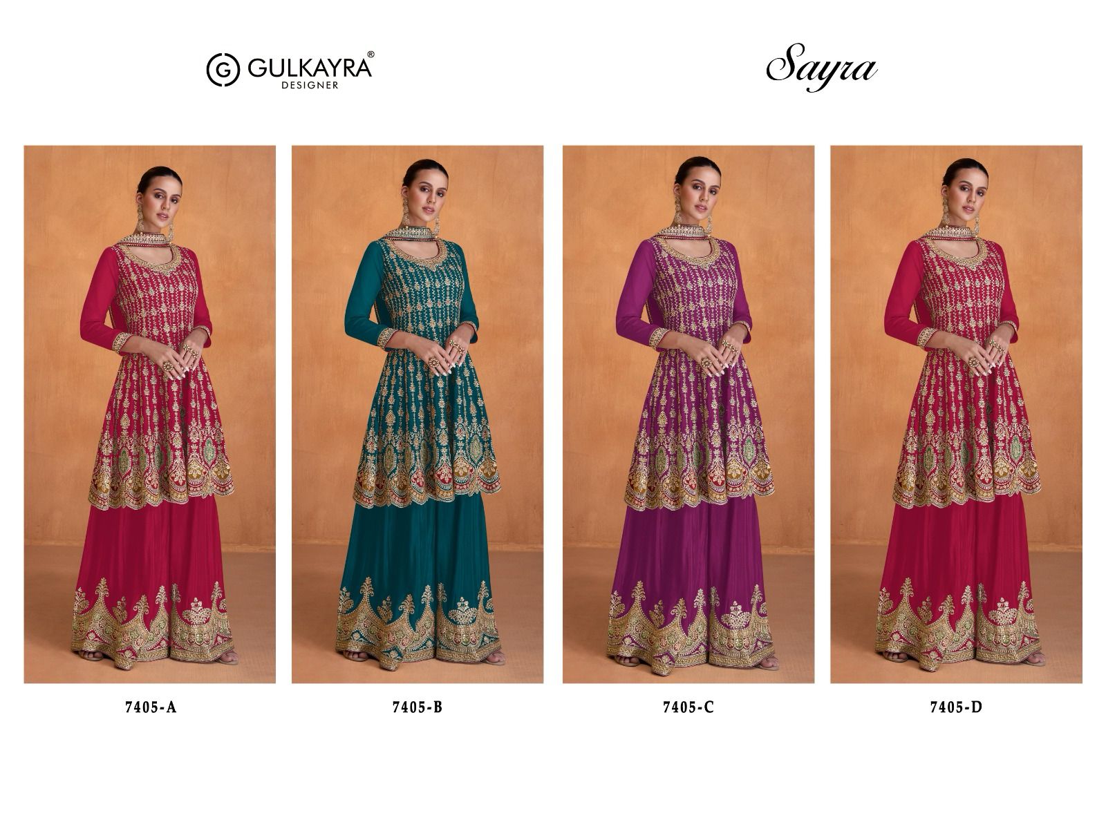 Buy Online Gulkayra Designer New Design Sayra Chinon Suits 4 Pcs of Full Catalogue at Wholesale Price. Looking for Gulkayra Designer New Design Sayra Chinon Suits Full Catalouge at Best Price? Buy Now Gulkayra Designer New Design Sayra Chinon Suits at Wholesale Rate of Rs 10396 with Total 4 Pcs from authroized dealer and supplier of Brand. Cost of Each piece is just only Rs 2599 which is very low and affordable price to resale the product in your retail store ,This is Surat based Wholesale Supplier & Dealer of Brand. Click on Brand name to Know more about Brand's products.Call or Whatsapp on 9898838984 for booking or enquiry