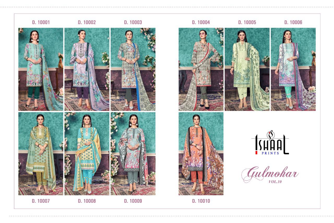 Gulmohar Vol 10 By Ishaal Prints Pure Lawn Cotton Suits Wholesale Supplier Gujarat