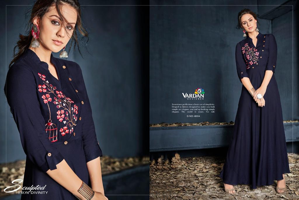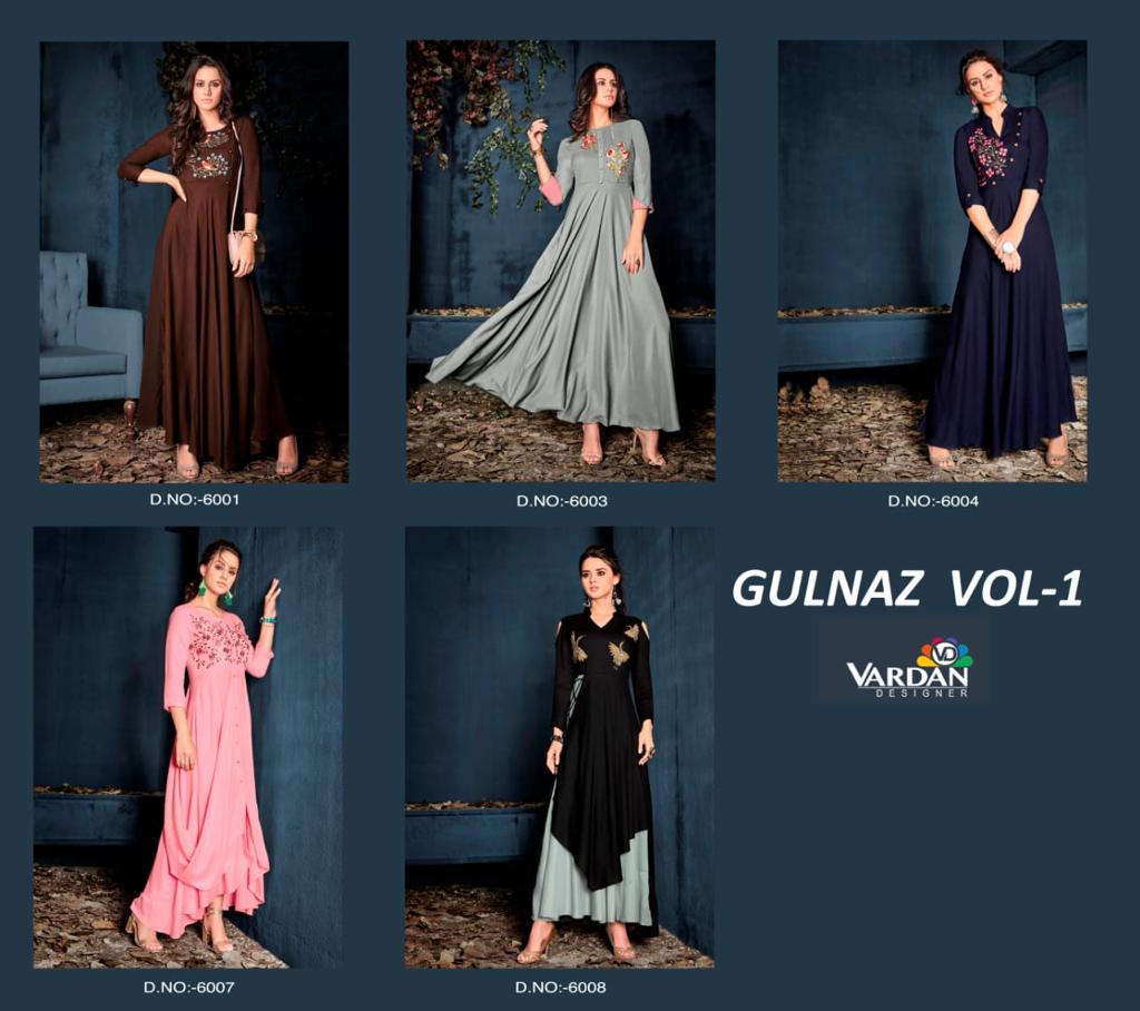 Buy Online Gulnaz By Vardan Designer Heavy Riyon Long Kurti Manufacturer Surat 5 Pcs of Full Catalogue at Wholesale Price. Looking for Gulnaz By Vardan Designer Heavy Riyon Long Kurti Manufacturer Surat Full Catalouge at Best Price? Buy Now Gulnaz By Vardan Designer Heavy Riyon Long Kurti Manufacturer Surat at Wholesale Rate of Rs 0 with Total 5 Pcs from authroized dealer and supplier of VARDAN DESIGNER Brand. Cost of Each piece is just only Rs 0 which is very low and affordable price to resale the product in your retail store ,This is Surat based Wholesale Supplier & Dealer of VARDAN DESIGNER Brand. Click on Brand name to Know more about VARDAN DESIGNER Brand's products.Call or Whatsapp on 9898838984 for booking or enquiry