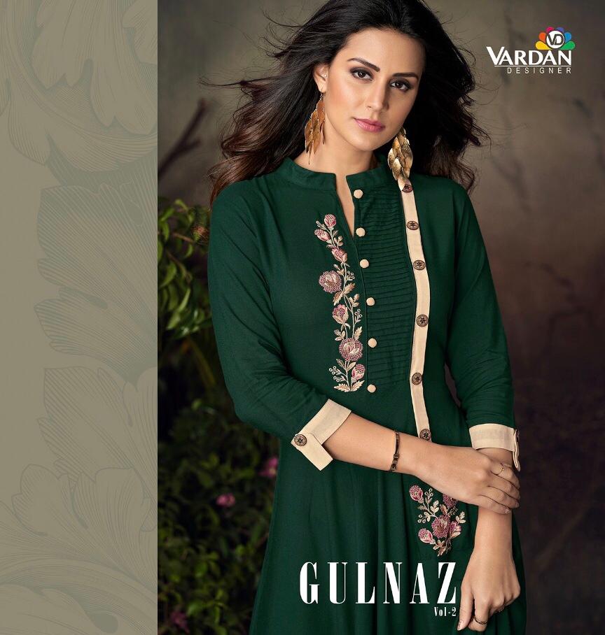 Buy Online Gulnaz Vol 2 By Vardan Kurtis Wholesale Supplier And Dealer Surat 8 Pcs of Full Catalogue at Wholesale Price. Looking for Gulnaz Vol 2 By Vardan Kurtis Wholesale Supplier And Dealer Surat Full Catalouge at Best Price? Buy Now Gulnaz Vol 2 By Vardan Kurtis Wholesale Supplier And Dealer Surat at Wholesale Rate of Rs 6360 with Total 8 Pcs from authroized dealer and supplier of VARDAN DESIGNER Brand. Cost of Each piece is just only Rs 795 which is very low and affordable price to resale the product in your retail store ,This is Surat based Wholesale Supplier & Dealer of VARDAN DESIGNER Brand. Click on Brand name to Know more about VARDAN DESIGNER Brand's products.Call or Whatsapp on 9898838984 for booking or enquiry