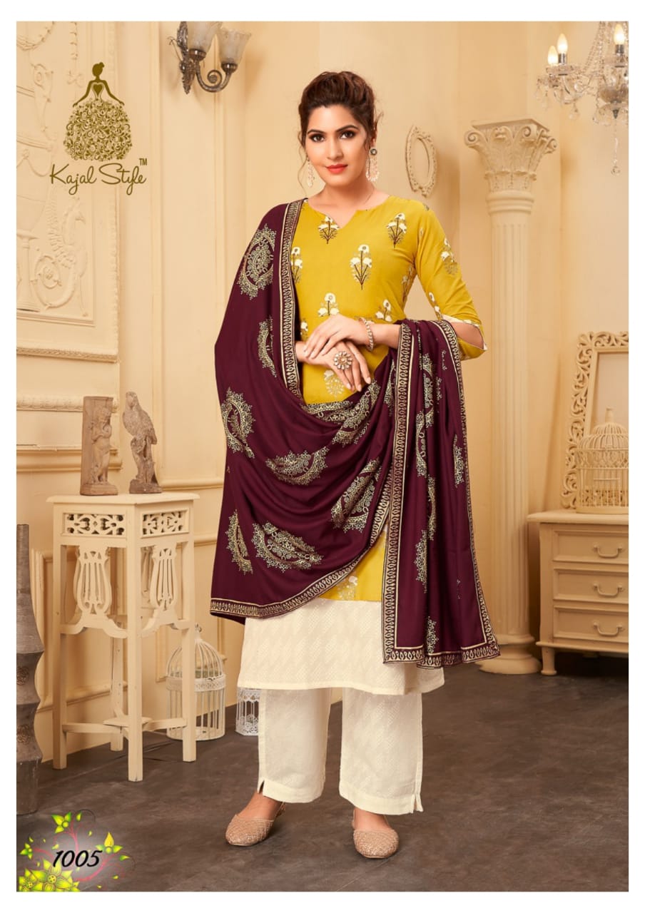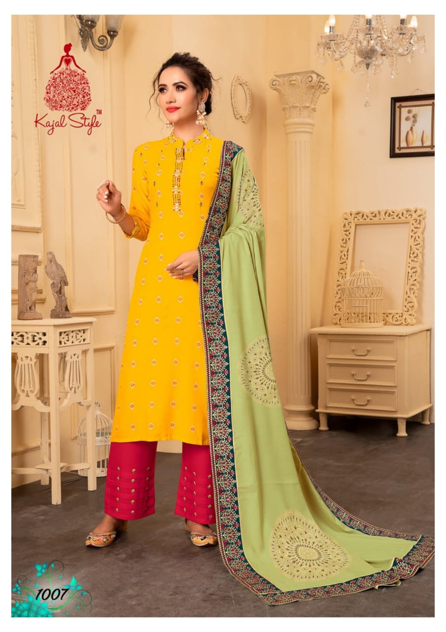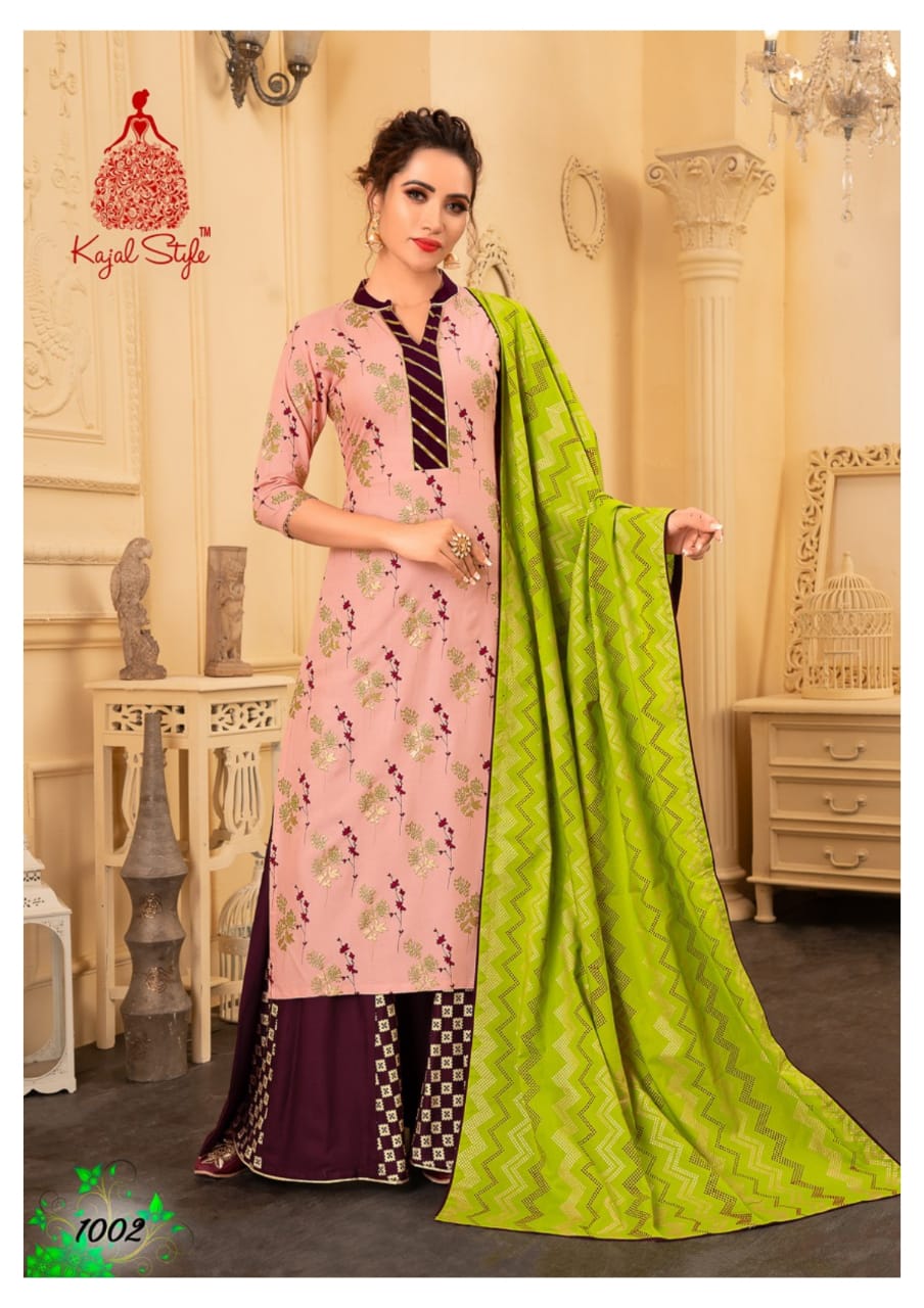 Buy Online Gulzar Vol 1 By Kajal Style Reyon Printed Party Wear Suits Wholesale Supplier Gujarat 8 Pcs of Full Catalogue at Wholesale Price. Looking for Gulzar Vol 1 By Kajal Style Reyon Printed Party Wear Suits Wholesale Supplier Gujarat Full Catalouge at Best Price? Buy Now Gulzar Vol 1 By Kajal Style Reyon Printed Party Wear Suits Wholesale Supplier Gujarat at Wholesale Rate of Rs 5192 with Total 8 Pcs from authroized dealer and supplier of KAJRI STYLE Brand. Cost of Each piece is just only Rs 649 which is very low and affordable price to resale the product in your retail store ,This is Surat based Wholesale Supplier & Dealer of KAJRI STYLE Brand. Click on Brand name to Know more about KAJRI STYLE Brand's products.Call or Whatsapp on 9898838984 for booking or enquiry