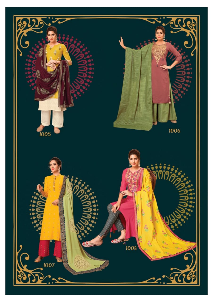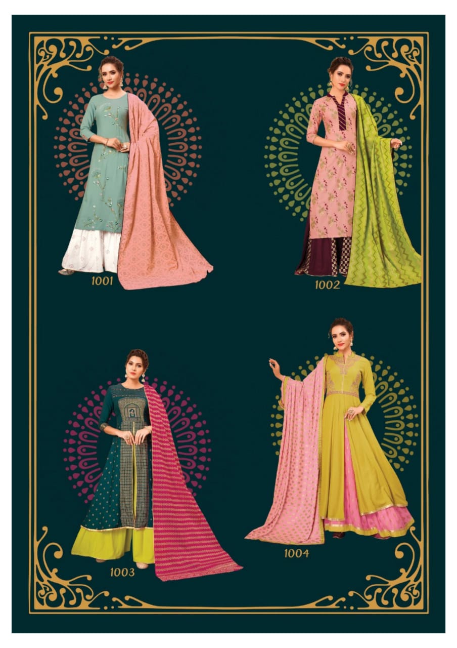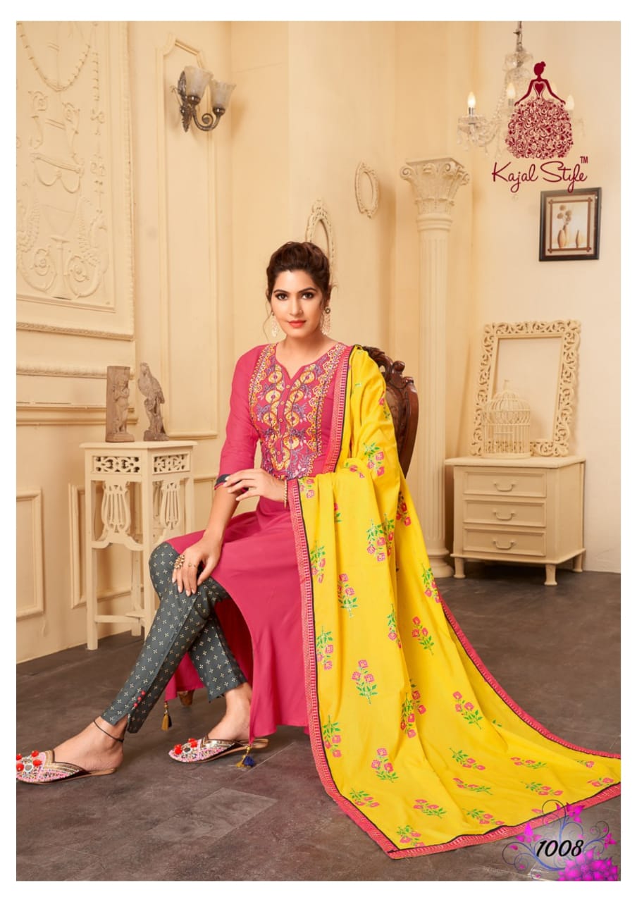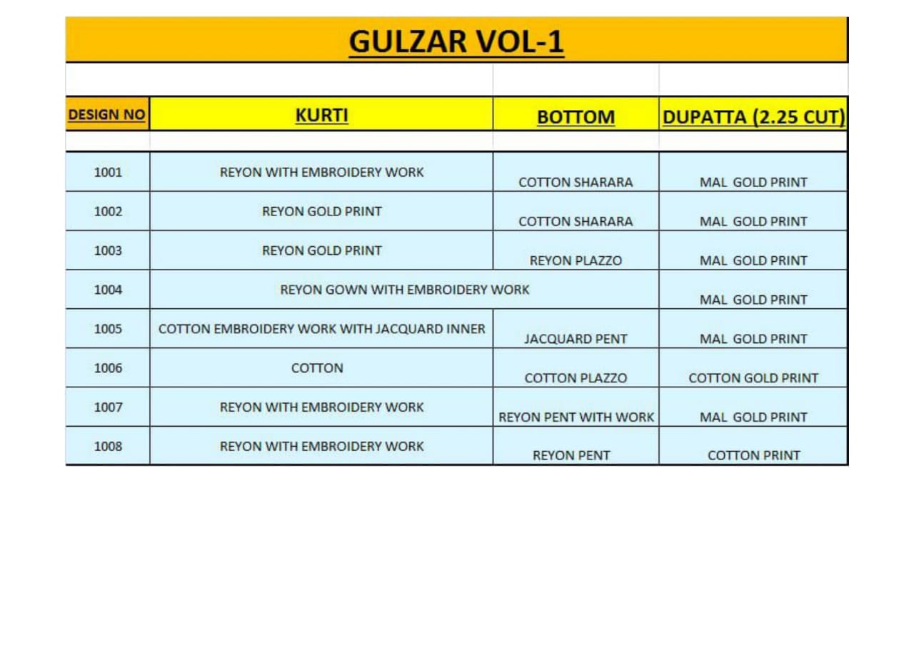 Buy Online Gulzar Vol 1 By Kajal Style Reyon Printed Party Wear Suits Wholesale Supplier Gujarat 8 Pcs of Full Catalogue at Wholesale Price. Looking for Gulzar Vol 1 By Kajal Style Reyon Printed Party Wear Suits Wholesale Supplier Gujarat Full Catalouge at Best Price? Buy Now Gulzar Vol 1 By Kajal Style Reyon Printed Party Wear Suits Wholesale Supplier Gujarat at Wholesale Rate of Rs 5192 with Total 8 Pcs from authroized dealer and supplier of KAJRI STYLE Brand. Cost of Each piece is just only Rs 649 which is very low and affordable price to resale the product in your retail store ,This is Surat based Wholesale Supplier & Dealer of KAJRI STYLE Brand. Click on Brand name to Know more about KAJRI STYLE Brand's products.Call or Whatsapp on 9898838984 for booking or enquiry