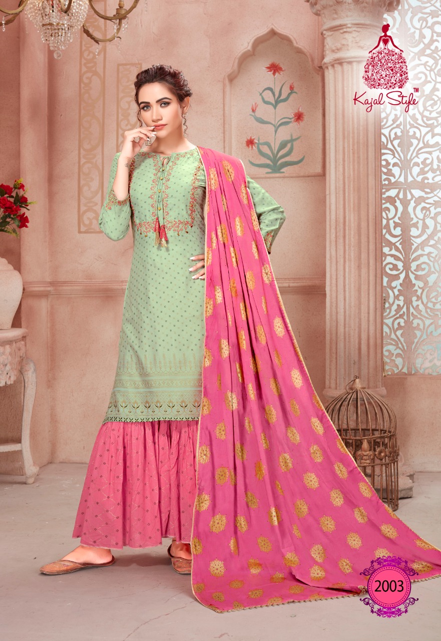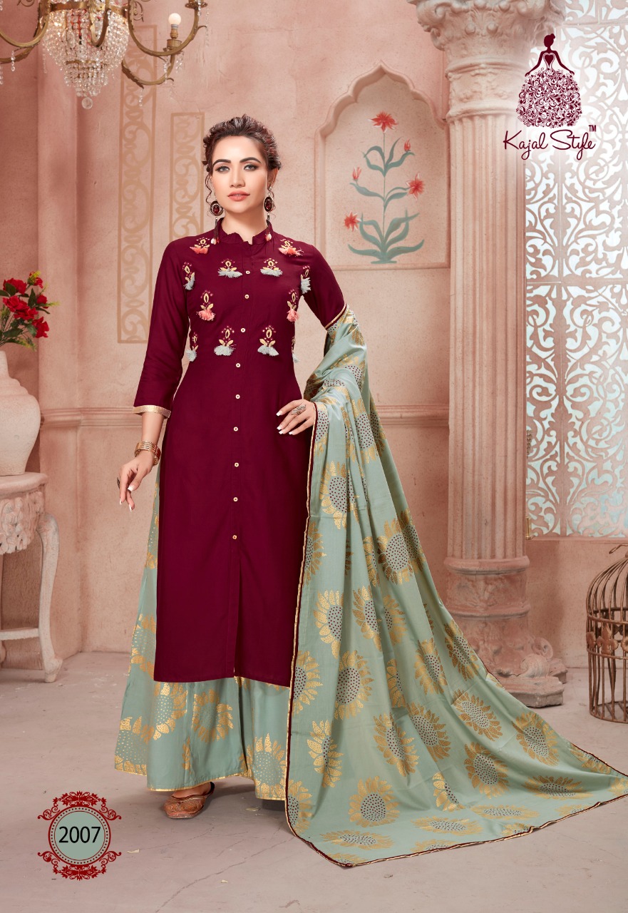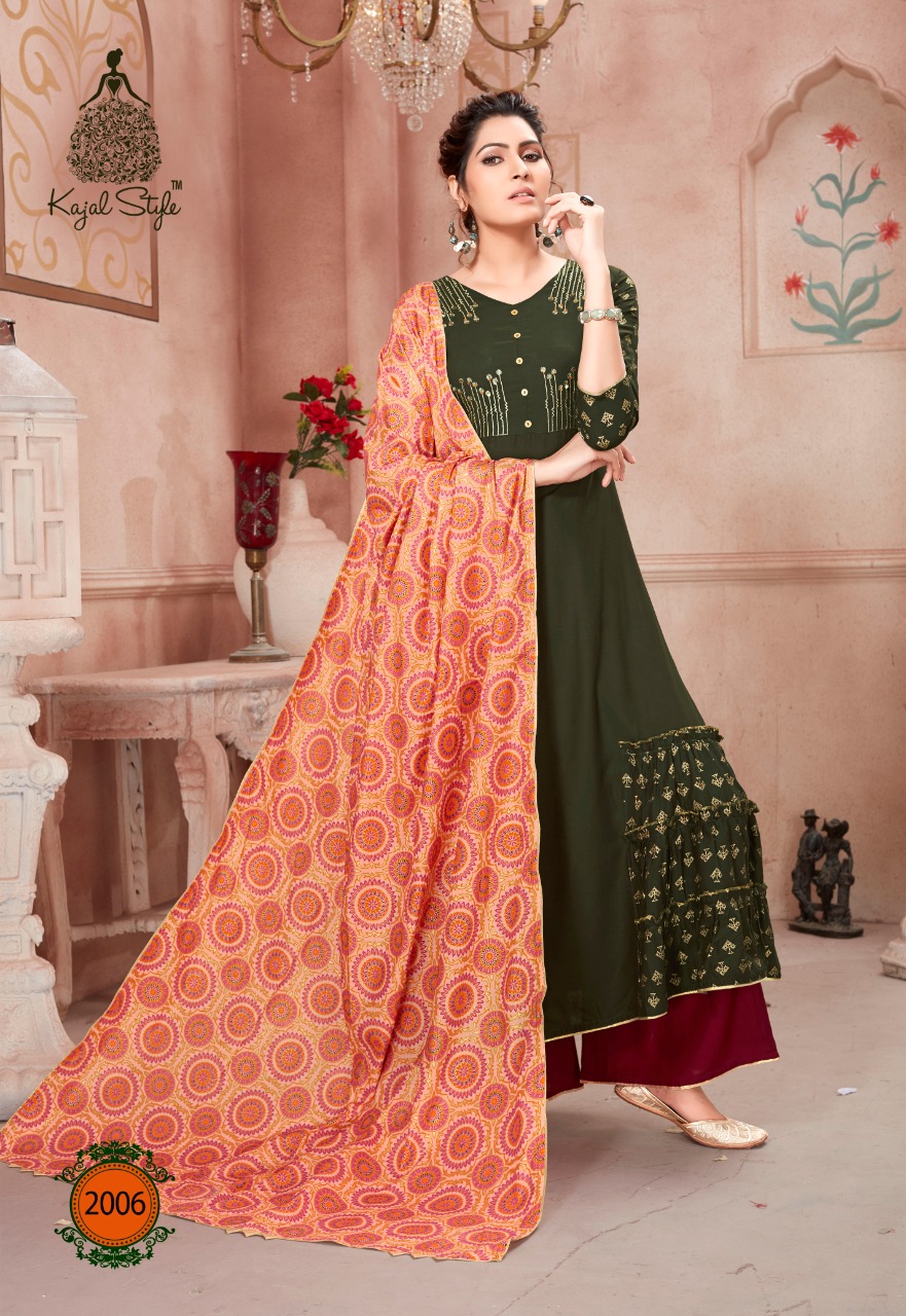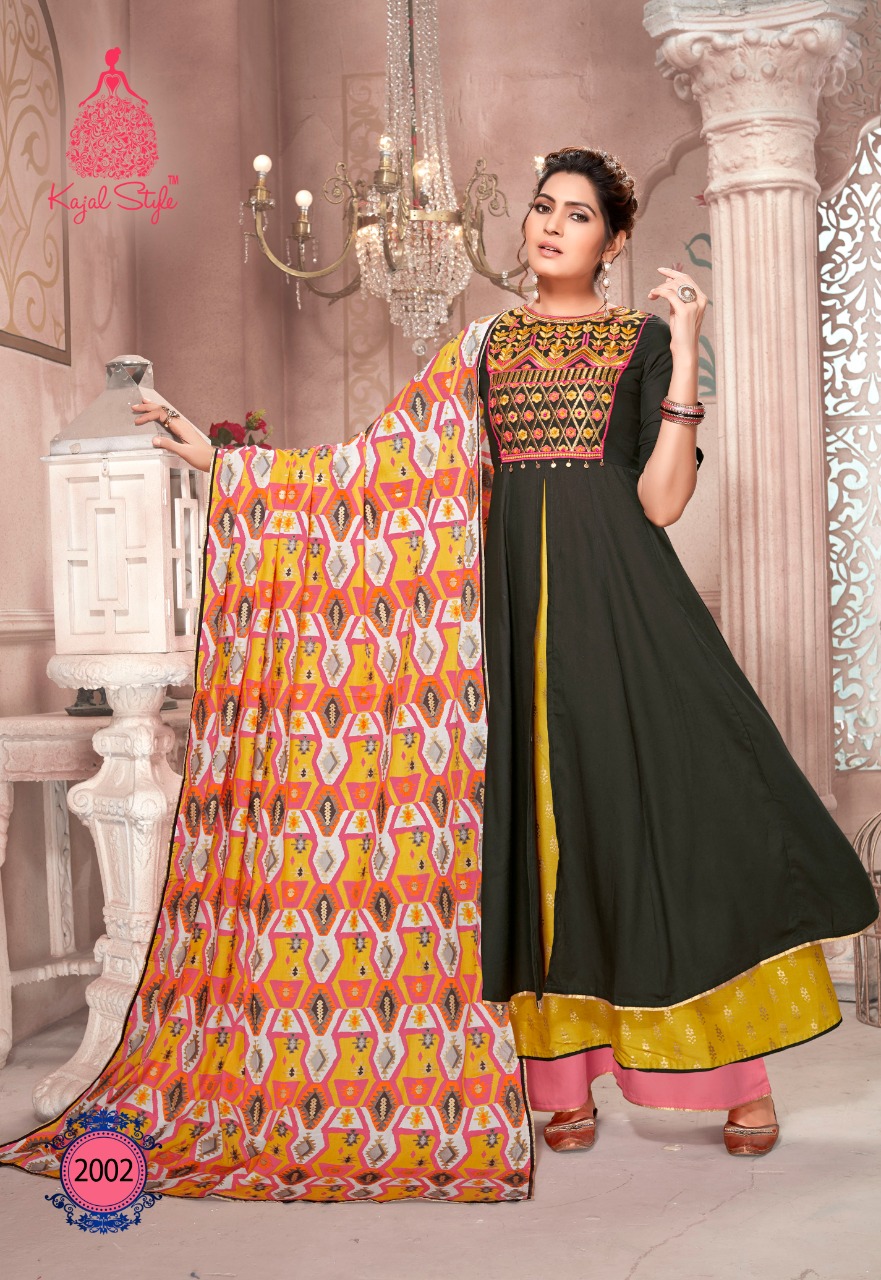 Buy Online Gulzar Vol 2 By Kajal Style Reyon Designer Kurtis With Bottom Nd Dupatta Wholesale Supplier And Dealer Surat 8 Pcs of Full Catalogue at Wholesale Price. Looking for Gulzar Vol 2 By Kajal Style Reyon Designer Kurtis With Bottom Nd Dupatta Wholesale Supplier And Dealer Surat Full Catalouge at Best Price? Buy Now Gulzar Vol 2 By Kajal Style Reyon Designer Kurtis With Bottom Nd Dupatta Wholesale Supplier And Dealer Surat at Wholesale Rate of Rs 0 with Total 8 Pcs from authroized dealer and supplier of KAJAL STYLE Brand. Cost of Each piece is just only Rs 0 which is very low and affordable price to resale the product in your retail store ,This is Surat based Wholesale Supplier & Dealer of KAJAL STYLE Brand. Click on Brand name to Know more about KAJAL STYLE Brand's products.Call or Whatsapp on 9898838984 for booking or enquiry