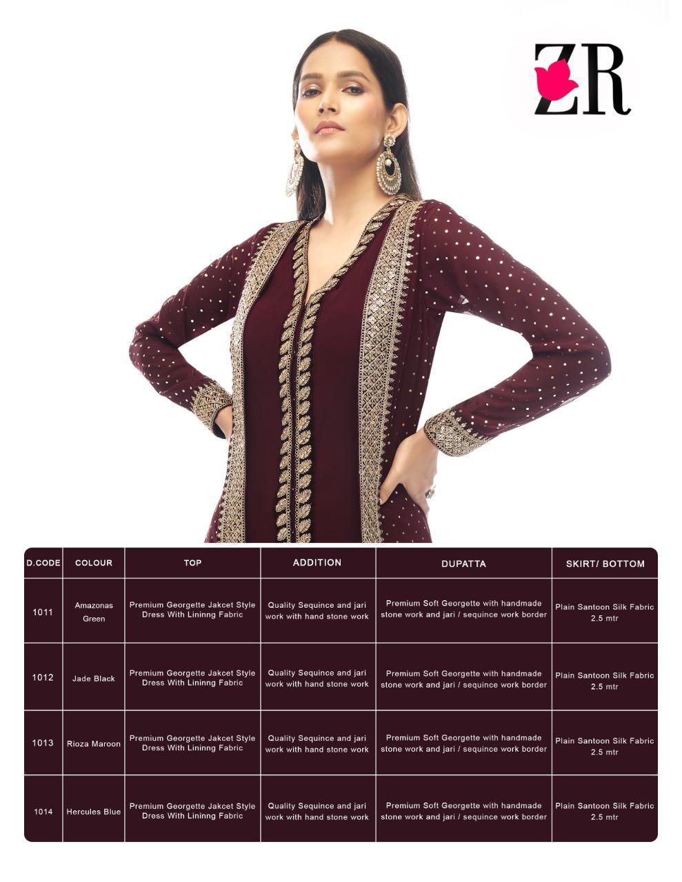 *GULZAR VOL 4* *Fabric Details:-* TOP: - *Premium Georgette Jacket Style Dress with Lining Fabric Sequence and Jari work with hand stone work* TOP INNER: -*Heavy Santoon* BOTTOM:- *Heavy Santoon* DUPATTA:-*Premium soft georgette with handmade stone work and Jari/sequence work Border* SIZE :- *Max up to 50Â? POSSIBLE* Weight :- *1200 Grams* TYPE :- *Semi Stitched* *-PRICE-1895/- GST EXTRA*- Set @ loose @ Singel GST 12 Percent Extra 100+single |