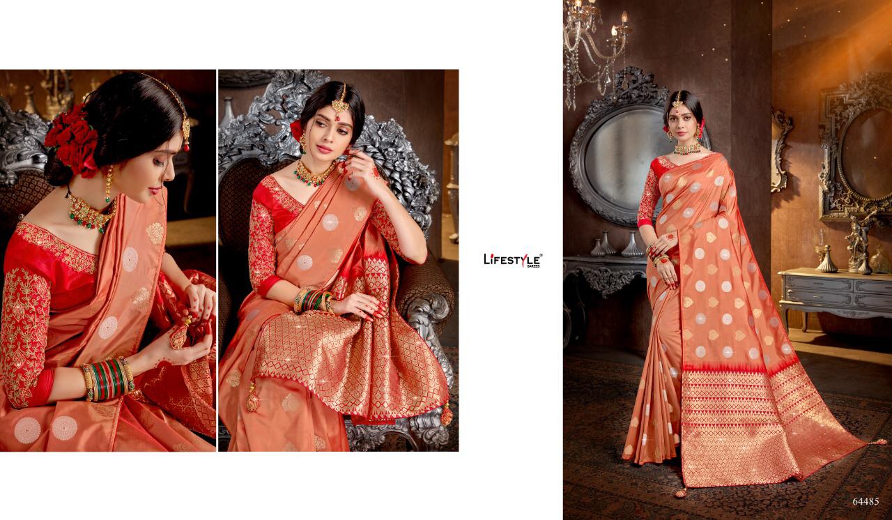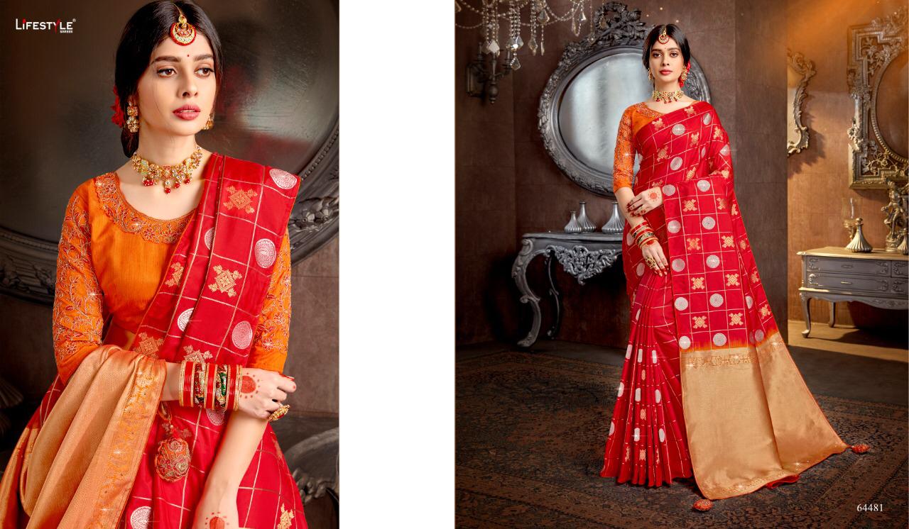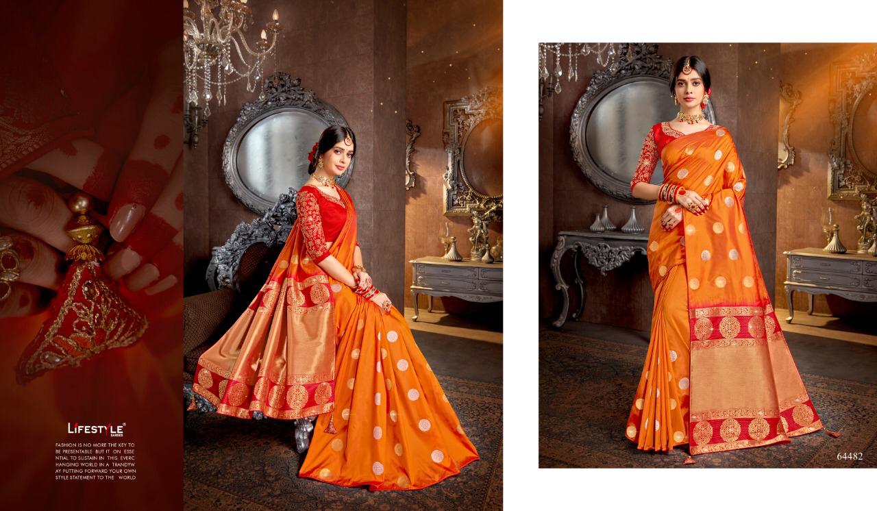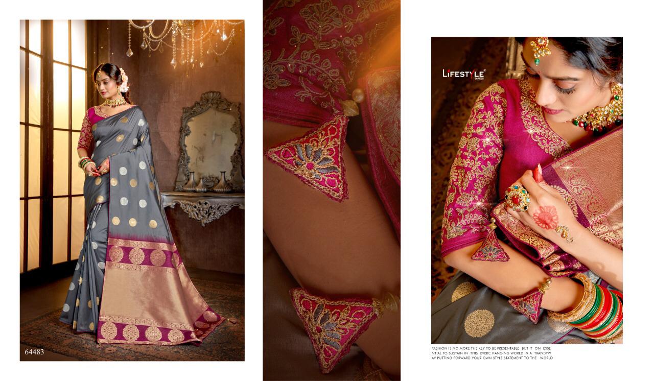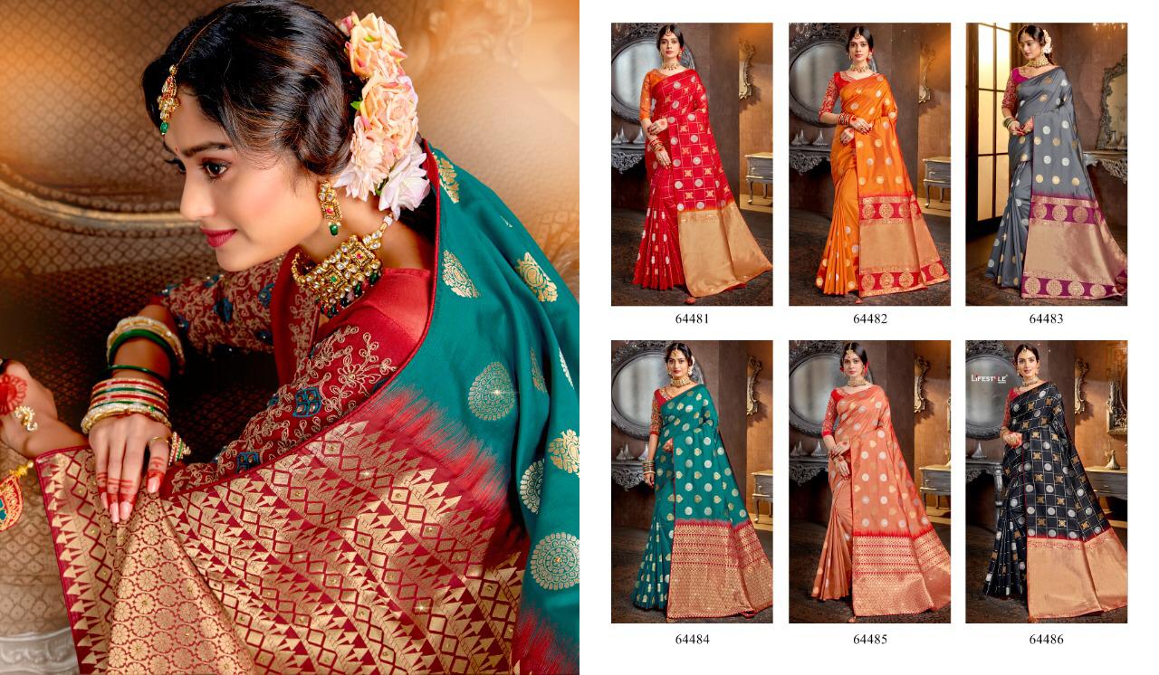 Buy Online Guzzarish By Lifestyle Weaving Silk Sarees Wholesale Supplier Gujarat 6 Pcs of Full Catalogue at Wholesale Price. Looking for Guzzarish By Lifestyle Weaving Silk Sarees Wholesale Supplier Gujarat Full Catalouge at Best Price? Buy Now Guzzarish By Lifestyle Weaving Silk Sarees Wholesale Supplier Gujarat at Wholesale Rate of Rs 8508 with Total 6 Pcs from authroized dealer and supplier of LIFESTYLE Brand. Cost of Each piece is just only Rs 1418 which is very low and affordable price to resale the product in your retail store ,This is Surat based Wholesale Supplier & Dealer of LIFESTYLE Brand. Click on Brand name to Know more about LIFESTYLE Brand's products.Call or Whatsapp on 9898838984 for booking or enquiry