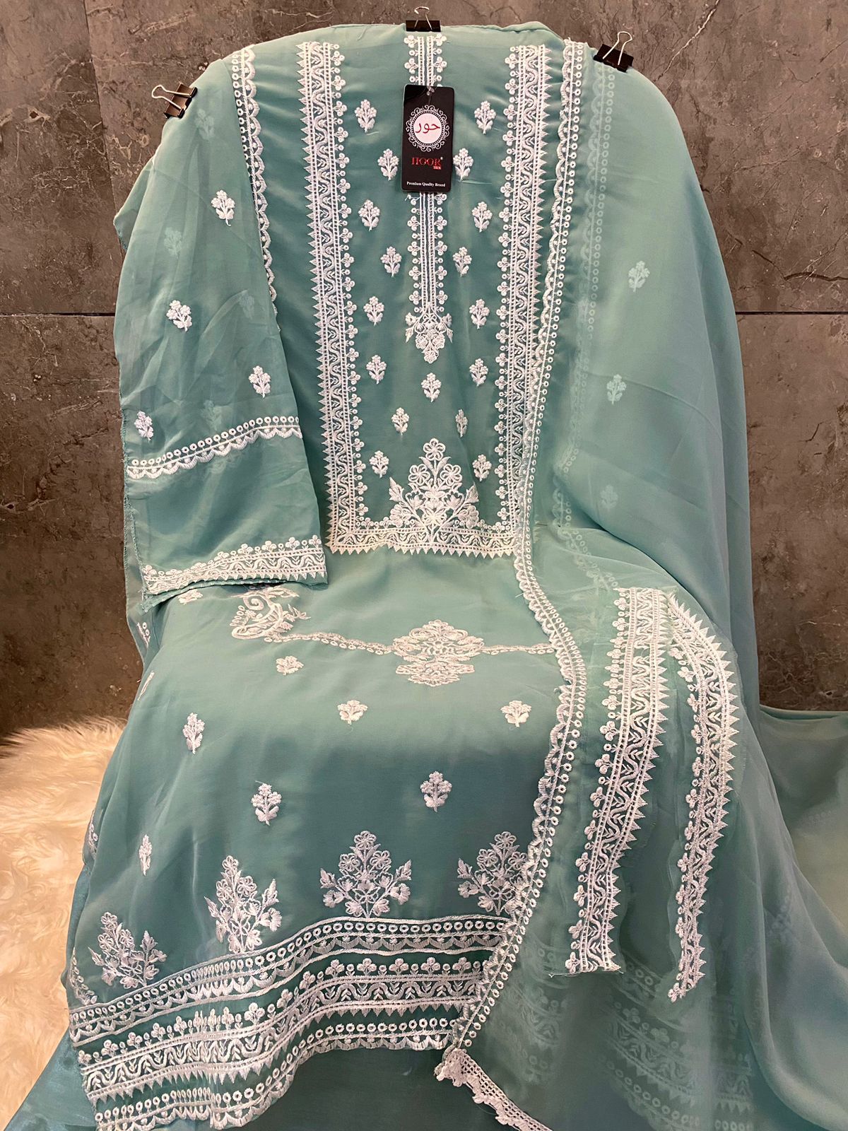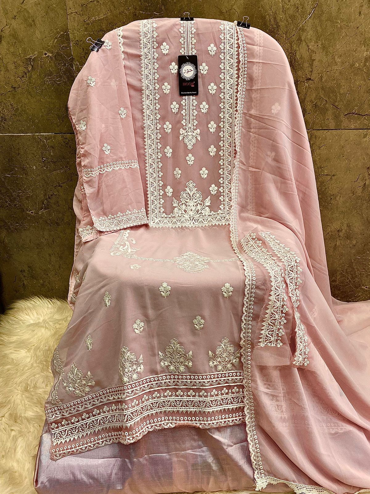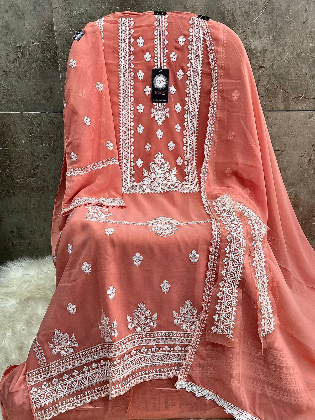 H 1001 A To E By Hoor Tex Georgette Suit With Embroidery Work Collection Manufacturer Surat