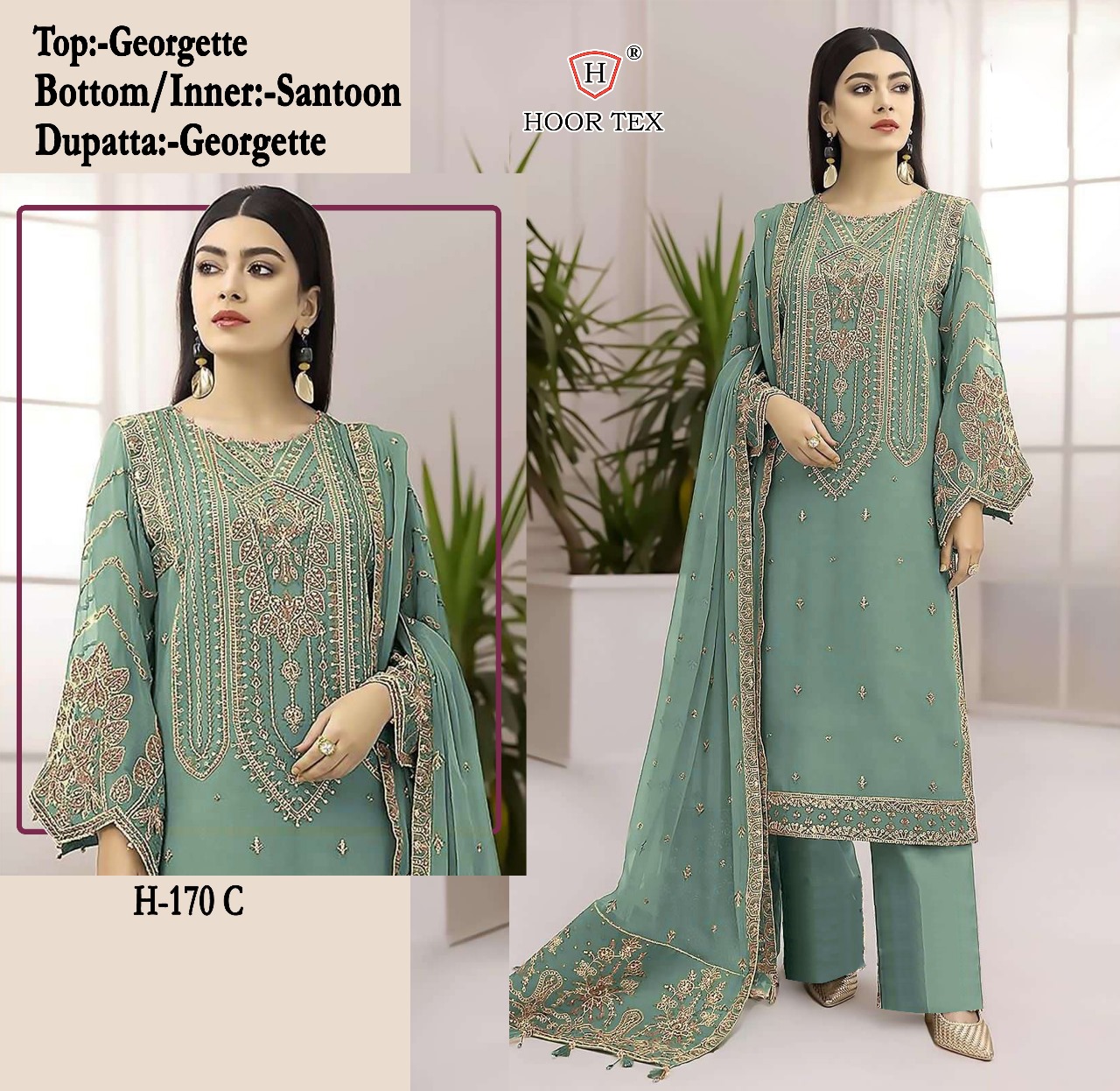 Buy Online H 170 B To D By Hoor Tex Georgette Pakistani Suits 3 Pcs of Full Catalogue at Wholesale Price. Looking for H 170 B To D By Hoor Tex Georgette Pakistani Suits Full Catalouge at Best Price? Buy Now H 170 B To D By Hoor Tex Georgette Pakistani Suits at Wholesale Rate of Rs 3597 with Total 3 Pcs from authroized dealer and supplier of Brand. Cost of Each piece is just only Rs 1199 which is very low and affordable price to resale the product in your retail store ,This is Surat based Wholesale Supplier & Dealer of Brand. Click on Brand name to Know more about Brand's products.Call or Whatsapp on 9898838984 for booking or enquiry