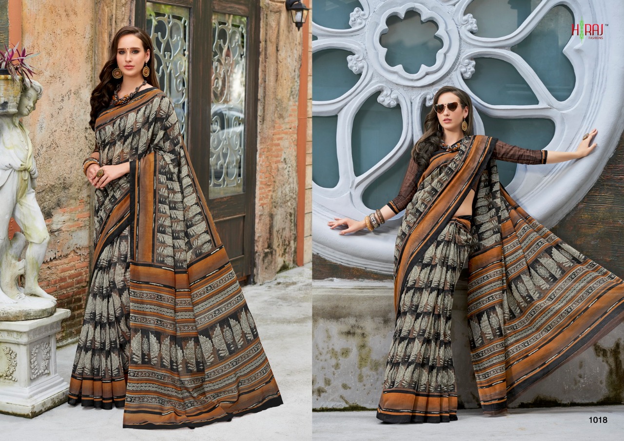 Buy Online H Raj Madhumita Vol 9 1001 Series Fancy Printed Saree Catlog Wholesale Dealer And Supplier Surat 18 Pcs of Full Catalogue at Wholesale Price. Looking for H Raj Madhumita Vol 9 1001 Series Fancy Printed Saree Catlog Wholesale Dealer And Supplier Surat Full Catalouge at Best Price? Buy Now H Raj Madhumita Vol 9 1001 Series Fancy Printed Saree Catlog Wholesale Dealer And Supplier Surat at Wholesale Rate of Rs 10710 with Total 18 Pcs from authroized dealer and supplier of H RAJ Brand. Cost of Each piece is just only Rs 595 which is very low and affordable price to resale the product in your retail store ,This is Surat based Wholesale Supplier & Dealer of H RAJ Brand. Click on Brand name to Know more about H RAJ Brand's products.Call or Whatsapp on 9898838984 for booking or enquiry