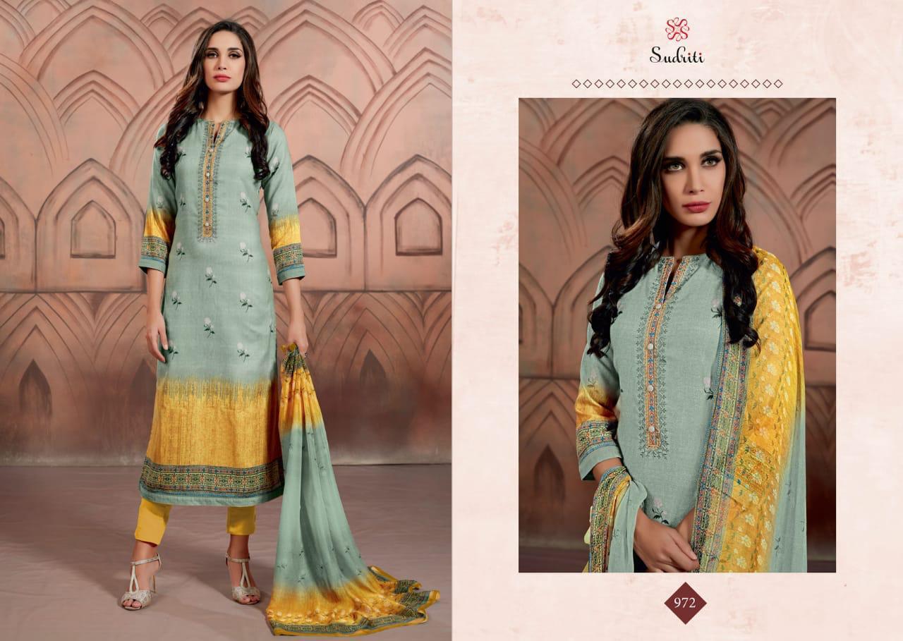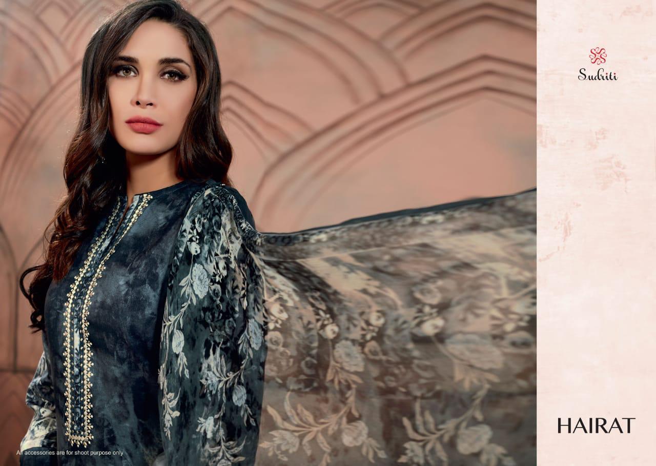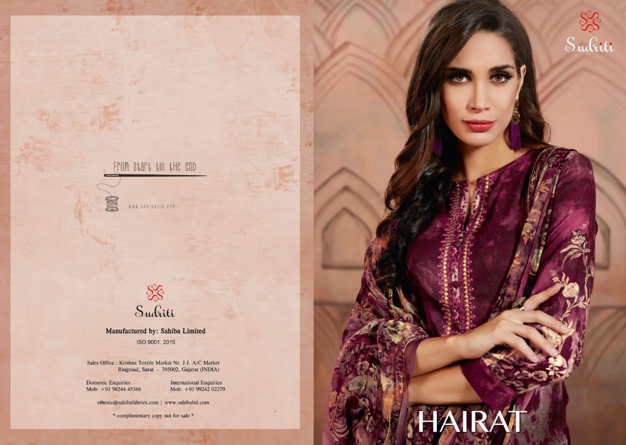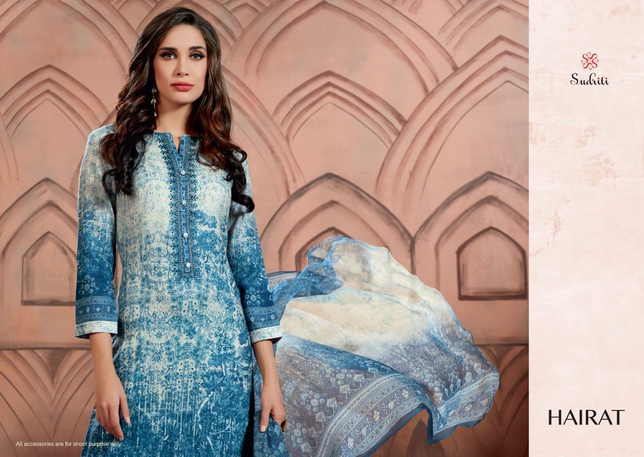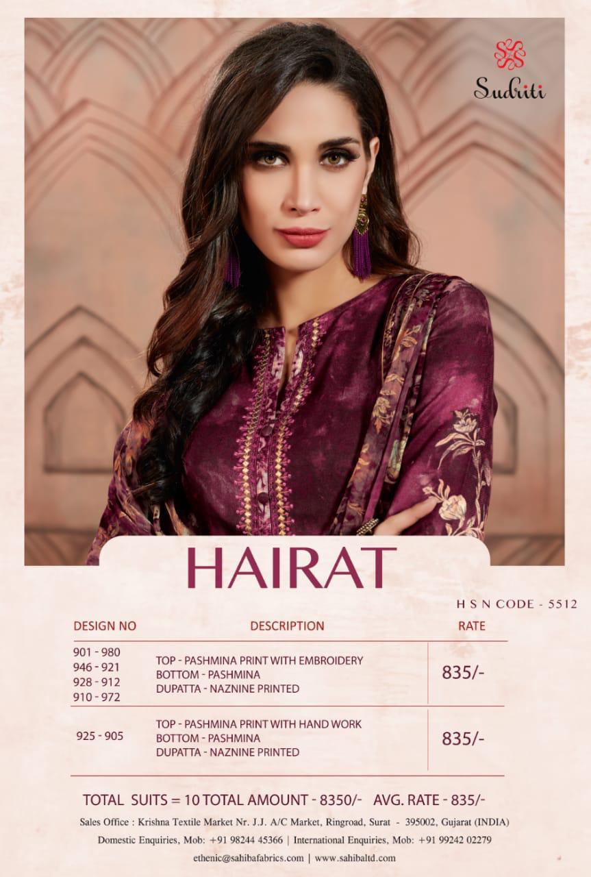 Buy Online Hairat By Sudriti Fancy Pashmina Printed Salwar Kameez Catlog Wholesale Dealer Surat 10 Pcs of Full Catalogue at Wholesale Price. Looking for Hairat By Sudriti Fancy Pashmina Printed Salwar Kameez Catlog Wholesale Dealer Surat Full Catalouge at Best Price? Buy Now Hairat By Sudriti Fancy Pashmina Printed Salwar Kameez Catlog Wholesale Dealer Surat at Wholesale Rate of Rs 8350 with Total 10 Pcs from authroized dealer and supplier of SUDRITI Brand. Cost of Each piece is just only Rs 835 which is very low and affordable price to resale the product in your retail store ,This is Surat based Wholesale Supplier & Dealer of SUDRITI Brand. Click on Brand name to Know more about SUDRITI Brand's products.Call or Whatsapp on 9898838984 for booking or enquiry