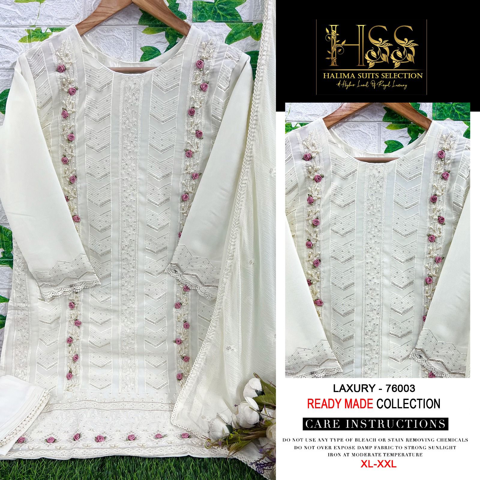 Buy Online Halima Suits Selection Laxury 76002-76003 Hss Creation Georgette Suits 2 Pcs of Full Catalogue at Wholesale Price. Looking for Halima Suits Selection Laxury 76002-76003 Hss Creation Georgette Suits Full Catalouge at Best Price? Buy Now Halima Suits Selection Laxury 76002-76003 Hss Creation Georgette Suits at Wholesale Rate of Rs 3000 with Total 2 Pcs from authroized dealer and supplier of Brand. Cost of Each piece is just only Rs 1500 which is very low and affordable price to resale the product in your retail store ,This is Surat based Wholesale Supplier & Dealer of Brand. Click on Brand name to Know more about Brand's products.Call or Whatsapp on 9898838984 for booking or enquiry