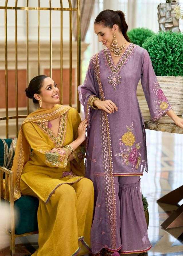 QUALITY:- ORGENJA CRUSH WITH EMBOS PRINT SHARARA
