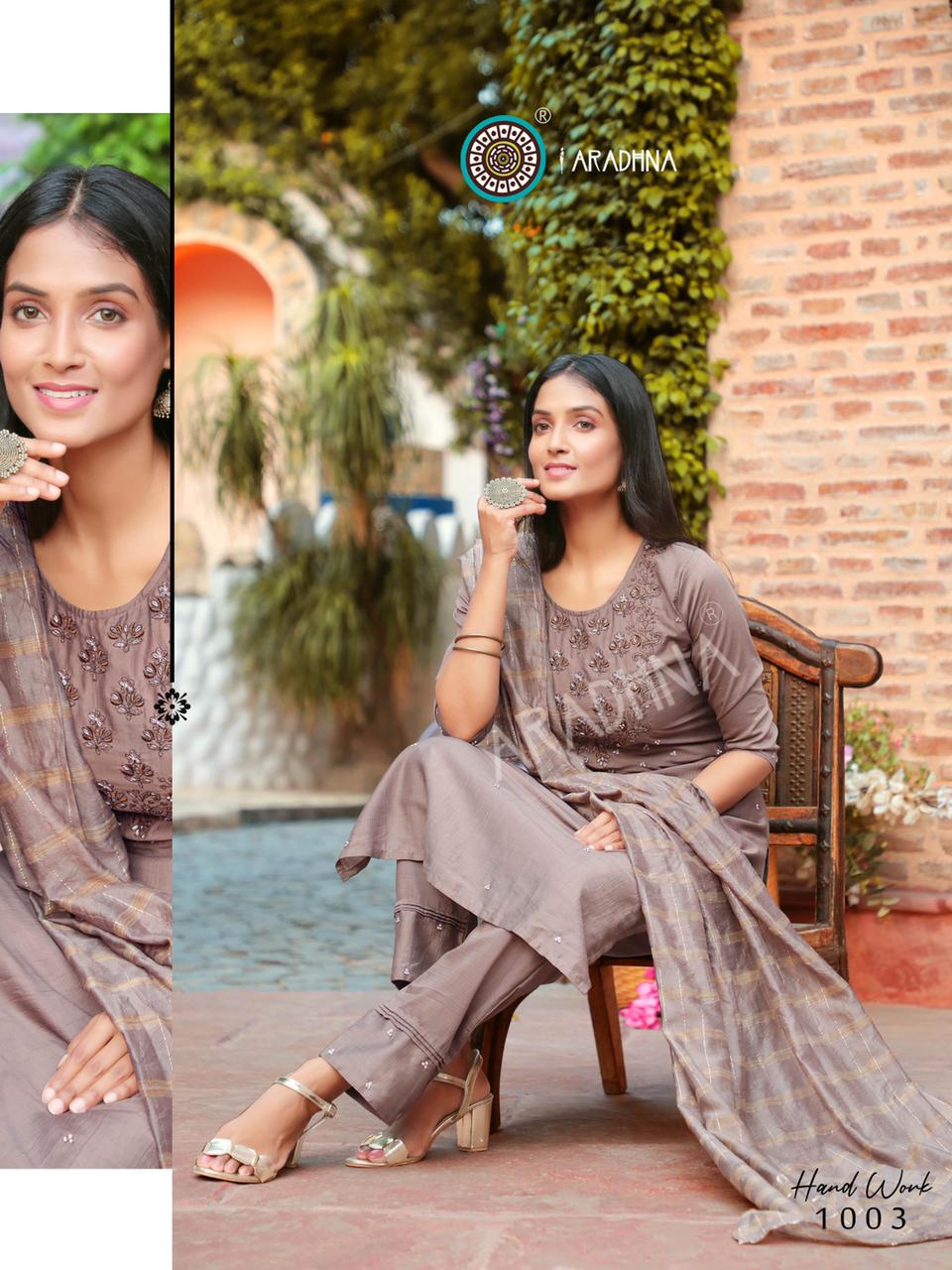 Buy Online Hand Work Vol 1 By Aradhna Wholesaler Supplier From Surat 6 Pcs of Full Catalogue at Wholesale Price. Looking for Hand Work Vol 1 By Aradhna Wholesaler Supplier From Surat Full Catalouge at Best Price? Buy Now Hand Work Vol 1 By Aradhna Wholesaler Supplier From Surat at Wholesale Rate of Rs 5970 with Total 6 Pcs from authroized dealer and supplier of Brand. Cost of Each piece is just only Rs 995 which is very low and affordable price to resale the product in your retail store ,This is Surat based Wholesale Supplier & Dealer of Brand. Click on Brand name to Know more about Brand's products.Call or Whatsapp on 9898838984 for booking or enquiry