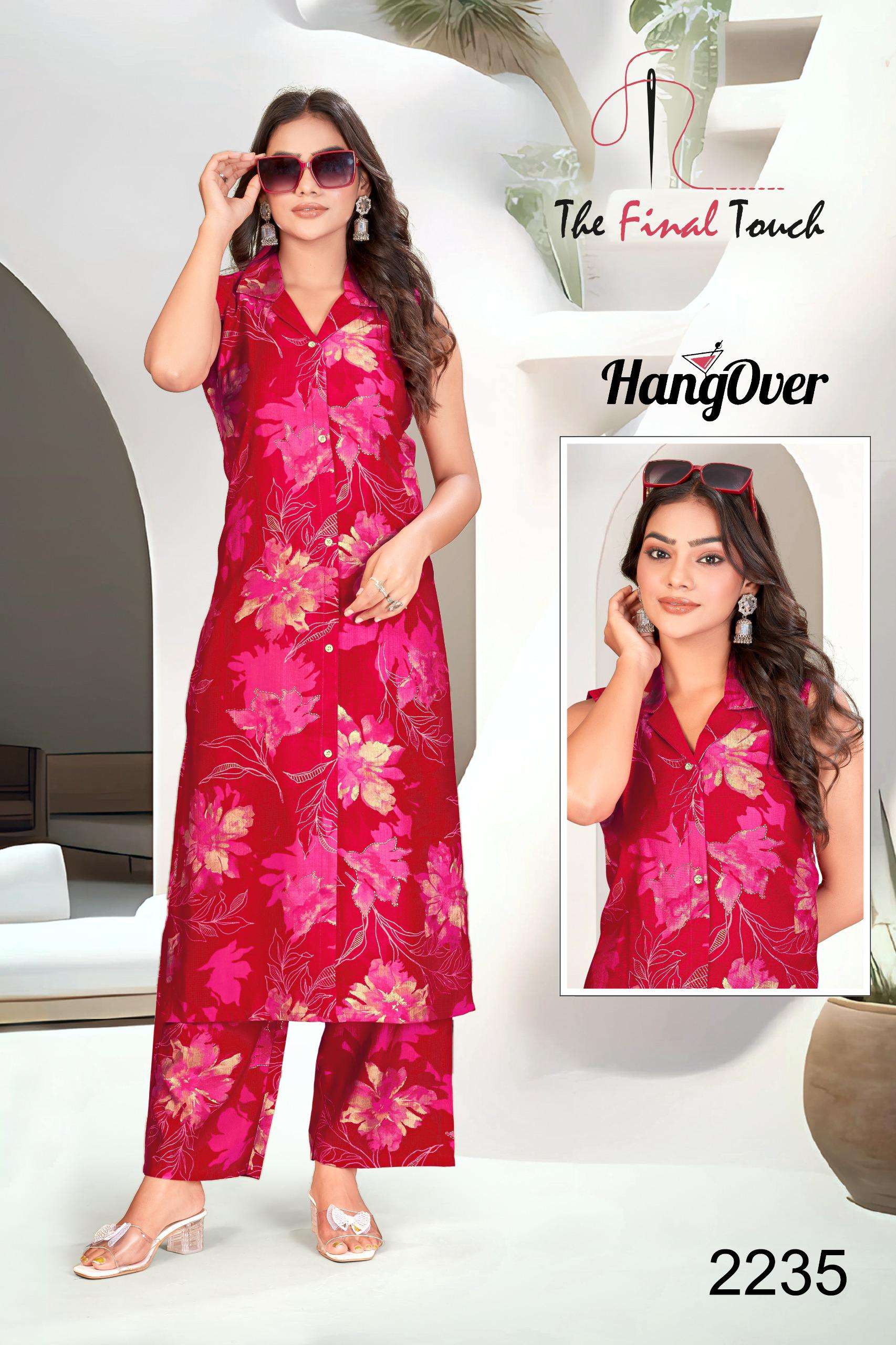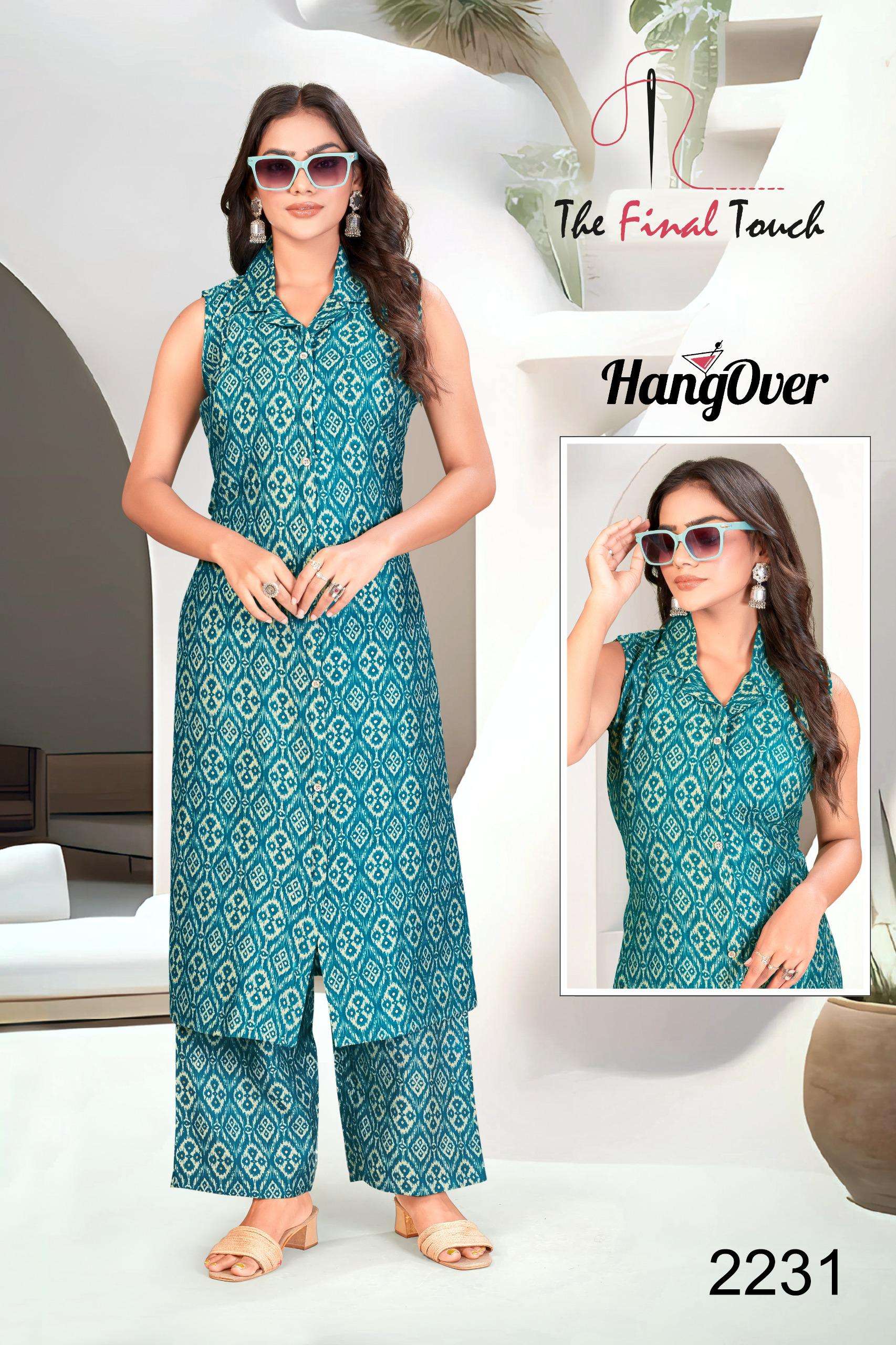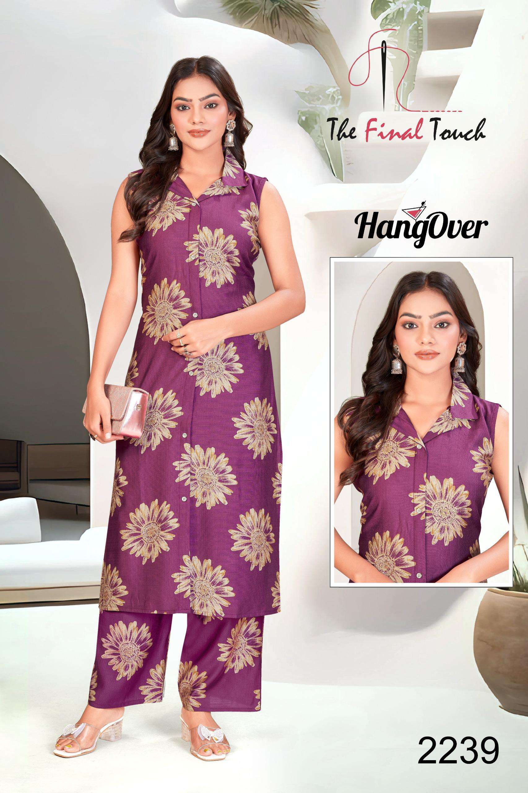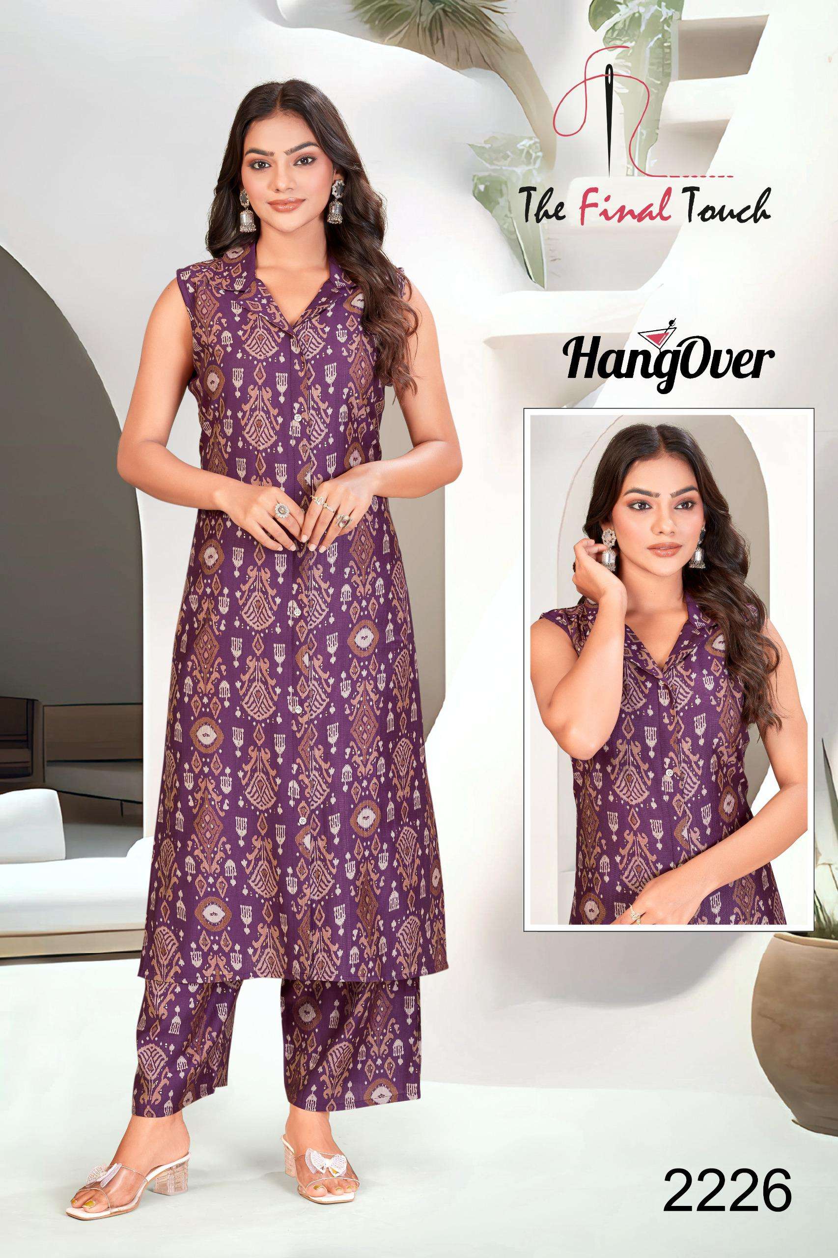 👗 Catalog Name: HANGOVER 🔸 Top: PREMIUM VETICAN PRINTS FOIL _SLEVEES ATTACHED_ 🔸 Bottom: PREMIUM VETICAN PRINT PLAZO 🔸 Length: 44 🔸 Sizes: M - 3XL(Combo Packing) 🎨 Available in 20 Stunning Colours