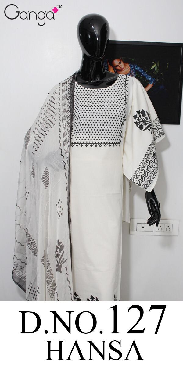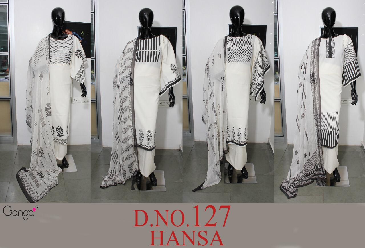Buy Online Hansa 127 By Ganga Cotton Designer Party Wear Suits Wholesale Supplier Surat 4 Pcs of Full Catalogue at Wholesale Price. Looking for Hansa 127 By Ganga Cotton Designer Party Wear Suits Wholesale Supplier Surat Full Catalouge at Best Price? Buy Now Hansa 127 By Ganga Cotton Designer Party Wear Suits Wholesale Supplier Surat at Wholesale Rate of Rs 4740 with Total 4 Pcs from authroized dealer and supplier of GANGA Brand. Cost of Each piece is just only Rs 1185 which is very low and affordable price to resale the product in your retail store ,This is Surat based Wholesale Supplier & Dealer of GANGA Brand. Click on Brand name to Know more about GANGA Brand's products.Call or Whatsapp on 9898838984 for booking or enquiry