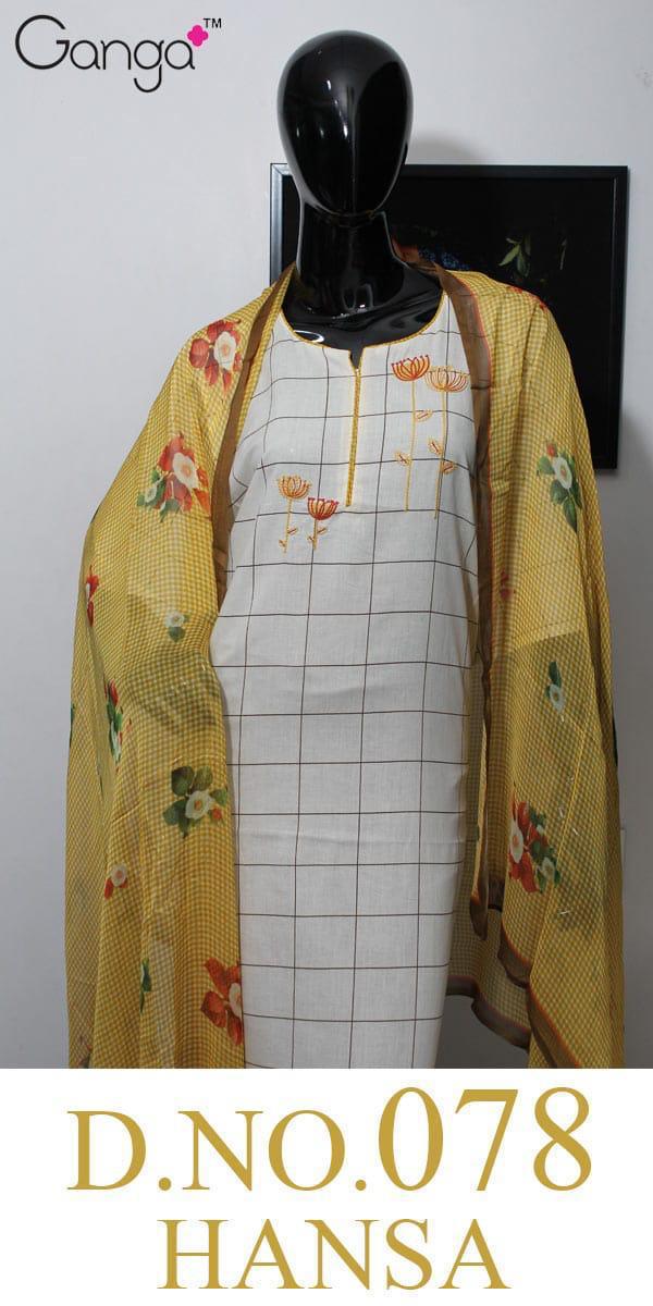 Buy Online Hansa 78 By Ganga Cotton Printed Suits Wholesale Supplier Surat 4 Pcs of Full Catalogue at Wholesale Price. Looking for Hansa 78 By Ganga Cotton Printed Suits Wholesale Supplier Surat Full Catalouge at Best Price? Buy Now Hansa 78 By Ganga Cotton Printed Suits Wholesale Supplier Surat at Wholesale Rate of Rs 4740 with Total 4 Pcs from authroized dealer and supplier of GANGA Brand. Cost of Each piece is just only Rs 1185 which is very low and affordable price to resale the product in your retail store ,This is Surat based Wholesale Supplier & Dealer of GANGA Brand. Click on Brand name to Know more about GANGA Brand's products.Call or Whatsapp on 9898838984 for booking or enquiry