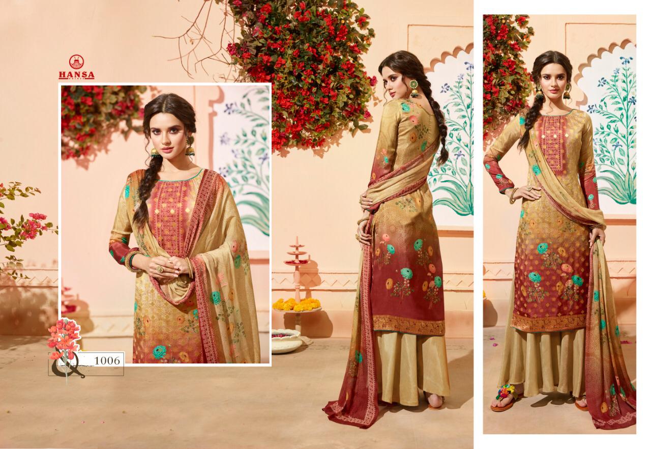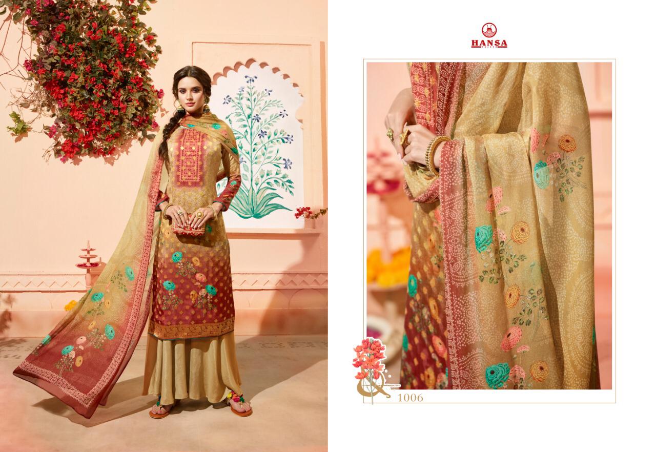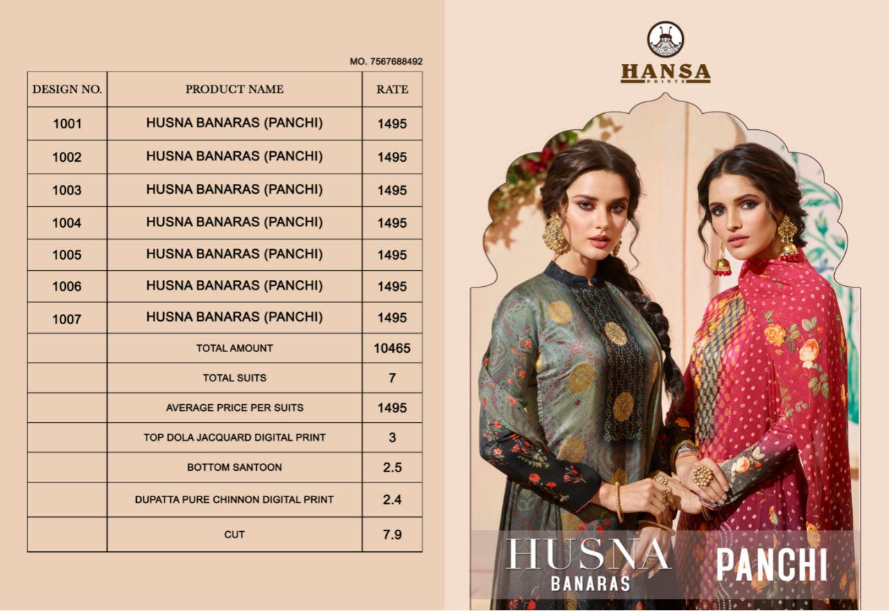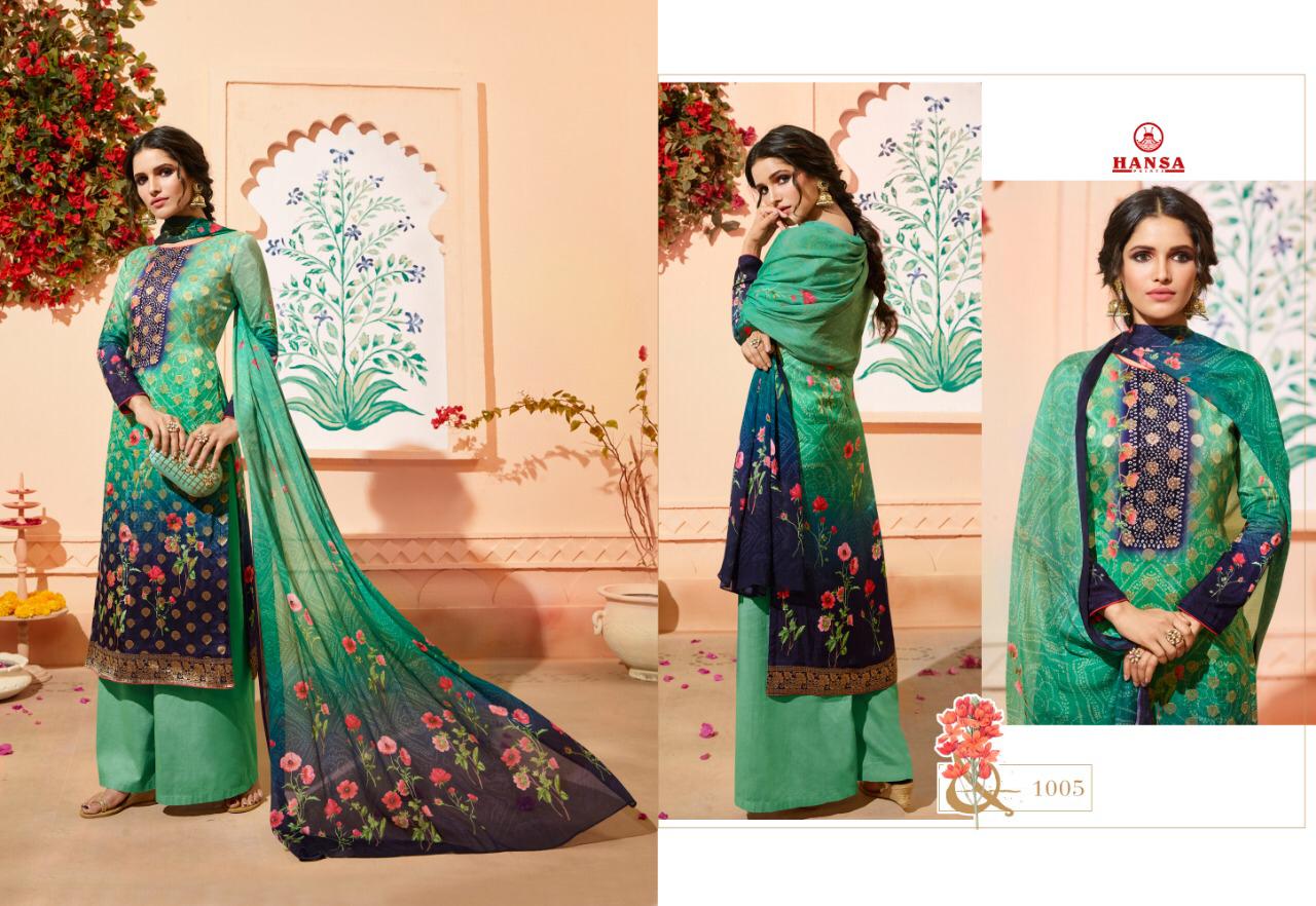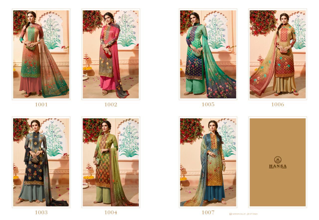 Buy Online Hansa Husba Panchi Series 1001 Designer Party Wear Suits Wholesale Supplier Gujarat 7 Pcs of Full Catalogue at Wholesale Price. Looking for Hansa Husba Panchi Series 1001 Designer Party Wear Suits Wholesale Supplier Gujarat Full Catalouge at Best Price? Buy Now Hansa Husba Panchi Series 1001 Designer Party Wear Suits Wholesale Supplier Gujarat at Wholesale Rate of Rs 10465 with Total 7 Pcs from authroized dealer and supplier of Brand. Cost of Each piece is just only Rs 1495 which is very low and affordable price to resale the product in your retail store ,This is Surat based Wholesale Supplier & Dealer of Brand. Click on Brand name to Know more about Brand's products.Call or Whatsapp on 9898838984 for booking or enquiry