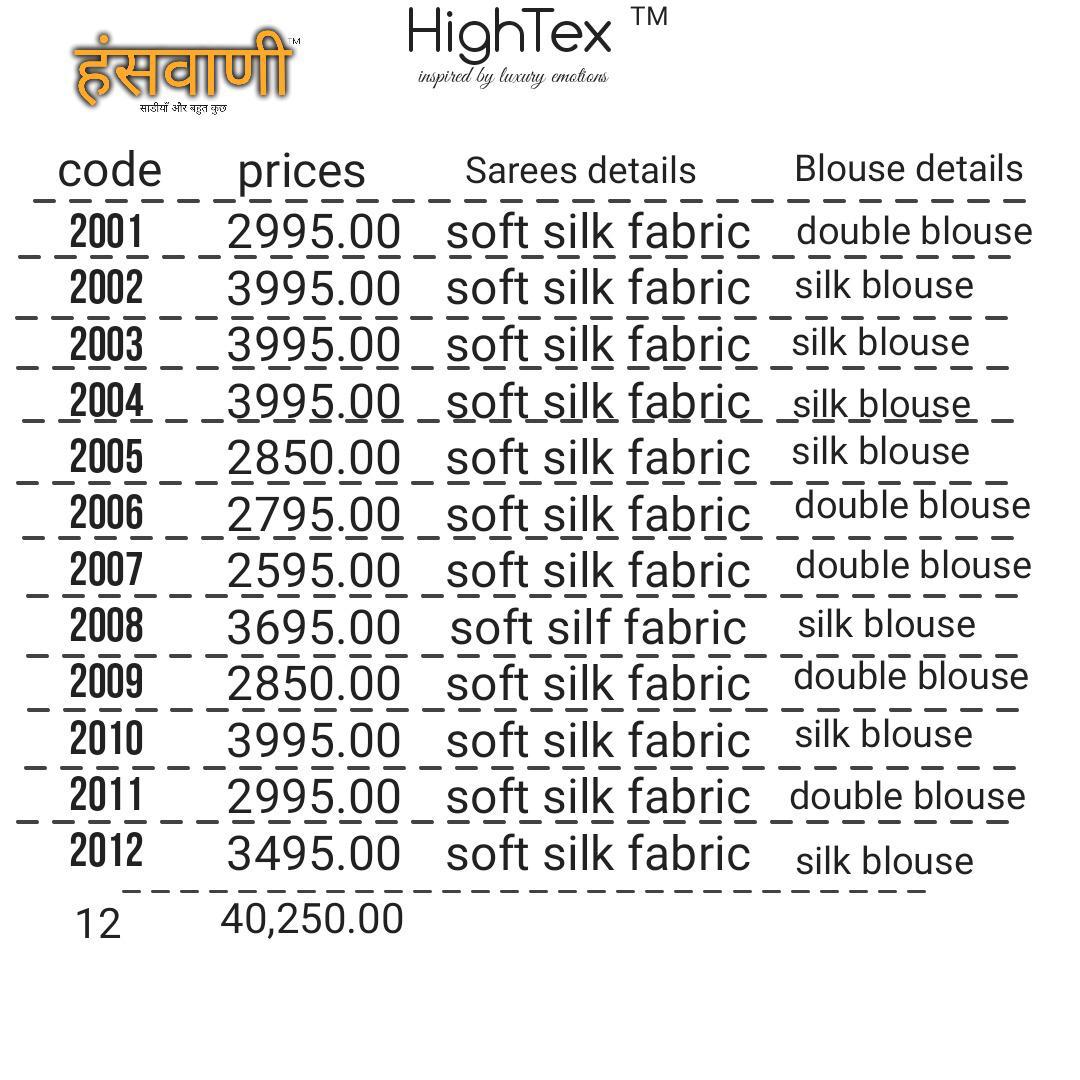 HANSWANI 2001 TO 2012 We are launching our new Catalog Brand:-HANSVANI Series:-2001 to 2012 Type:- SAREE * set & loose & Singel * P silk Fabric all saree. Single Price extra 100 Delivery - Today |