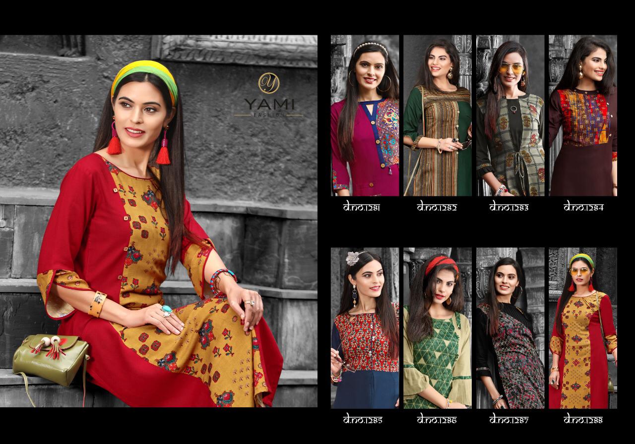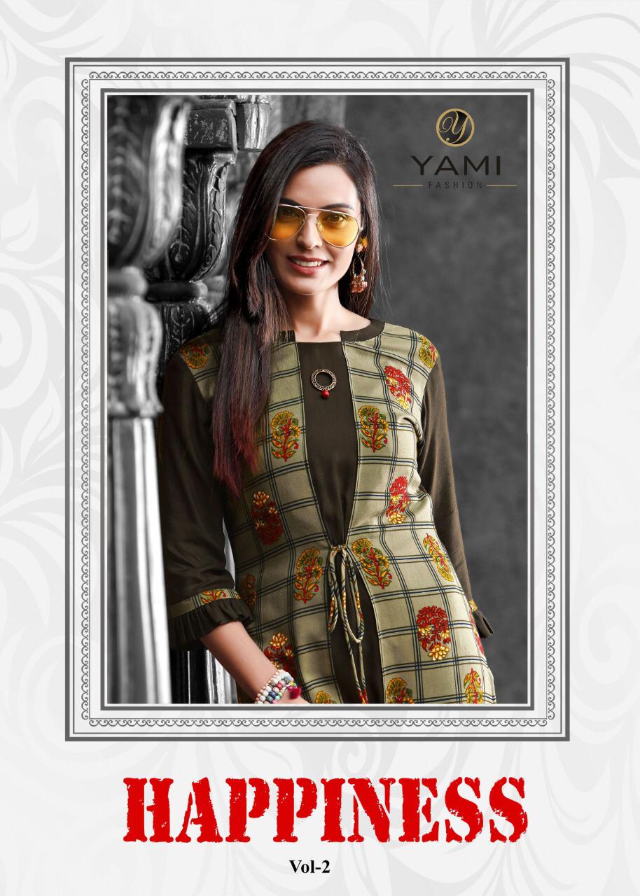 Buy Online Happiness Vol 2 By Yami Fashion Reyon Designer Party Wear Kurtis Wholesale Supplier Surat 8 Pcs of Full Catalogue at Wholesale Price. Looking for Happiness Vol 2 By Yami Fashion Reyon Designer Party Wear Kurtis Wholesale Supplier Surat Full Catalouge at Best Price? Buy Now Happiness Vol 2 By Yami Fashion Reyon Designer Party Wear Kurtis Wholesale Supplier Surat at Wholesale Rate of Rs 3960 with Total 8 Pcs from authroized dealer and supplier of BRAND'S Brand. Cost of Each piece is just only Rs 495 which is very low and affordable price to resale the product in your retail store ,This is Surat based Wholesale Supplier & Dealer of BRAND'S Brand. Click on Brand name to Know more about BRAND'S Brand's products.Call or Whatsapp on 9898838984 for booking or enquiry