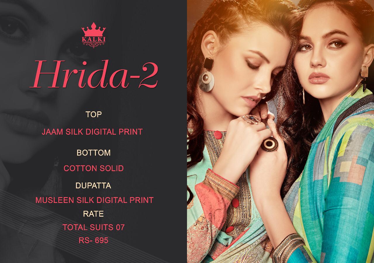 Buy Online Harida Vol 2 By Kalki 3001 Series Fancy Jaam Silk Digital Printed Salwar Kameez Catlog Wholesaler Surat 7 Pcs of Full Catalogue at Wholesale Price. Looking for Harida Vol 2 By Kalki 3001 Series Fancy Jaam Silk Digital Printed Salwar Kameez Catlog Wholesaler Surat Full Catalouge at Best Price? Buy Now Harida Vol 2 By Kalki 3001 Series Fancy Jaam Silk Digital Printed Salwar Kameez Catlog Wholesaler Surat at Wholesale Rate of Rs 4865 with Total 7 Pcs from authroized dealer and supplier of Brand. Cost of Each piece is just only Rs 695 which is very low and affordable price to resale the product in your retail store ,This is Surat based Wholesale Supplier & Dealer of Brand. Click on Brand name to Know more about Brand's products.Call or Whatsapp on 9898838984 for booking or enquiry