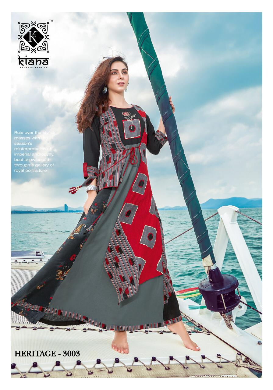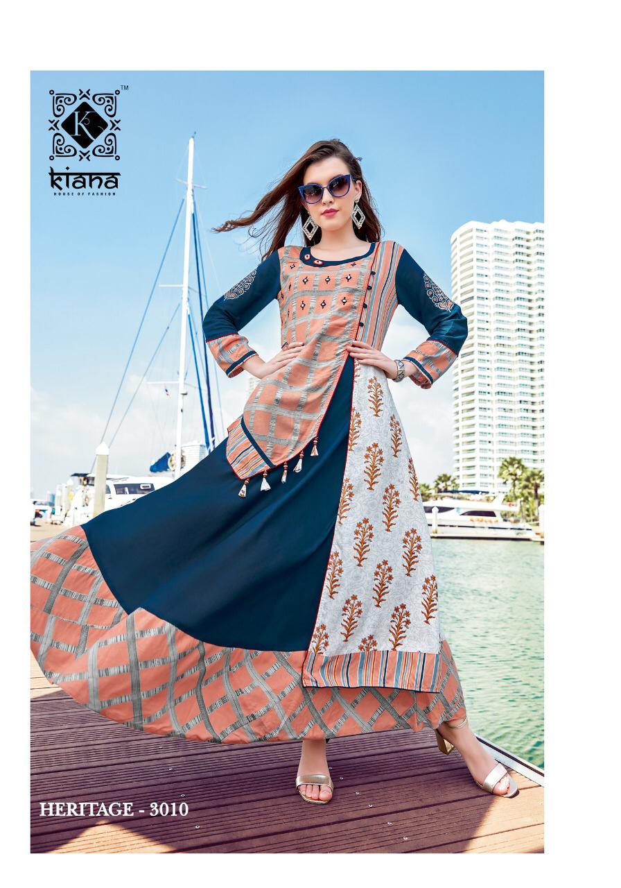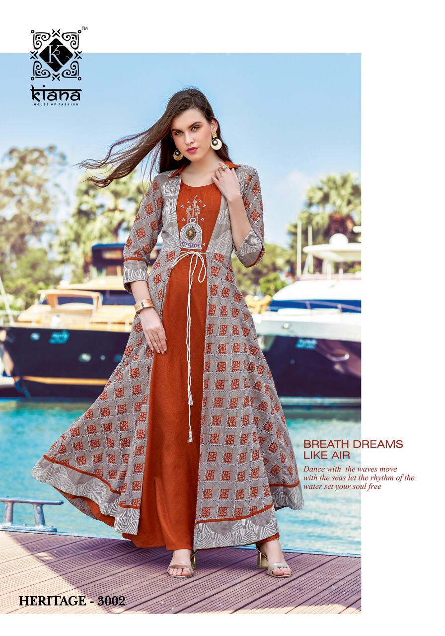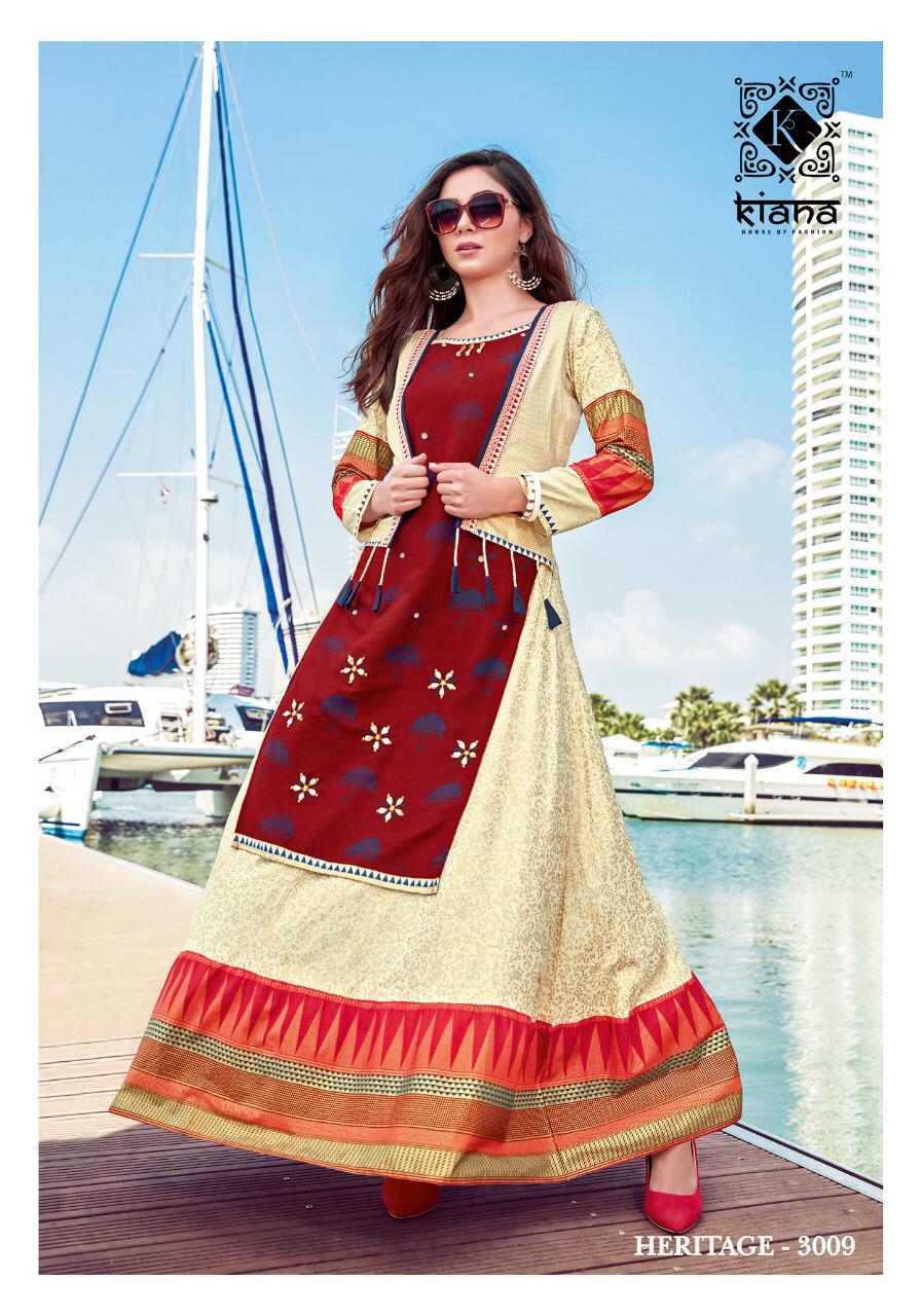 Buy Online Haritage Vol 3 By Kiana Fashion Reyon Designer Party Wear Kurtis Wholesale Supplier And Dealer Gujarat 10 Pcs of Full Catalogue at Wholesale Price. Looking for Haritage Vol 3 By Kiana Fashion Reyon Designer Party Wear Kurtis Wholesale Supplier And Dealer Gujarat Full Catalouge at Best Price? Buy Now Haritage Vol 3 By Kiana Fashion Reyon Designer Party Wear Kurtis Wholesale Supplier And Dealer Gujarat at Wholesale Rate of Rs 8300 with Total 10 Pcs from authroized dealer and supplier of KIANAA FASHION Brand. Cost of Each piece is just only Rs 830 which is very low and affordable price to resale the product in your retail store ,This is Surat based Wholesale Supplier & Dealer of KIANAA FASHION Brand. Click on Brand name to Know more about KIANAA FASHION Brand's products.Call or Whatsapp on 9898838984 for booking or enquiry