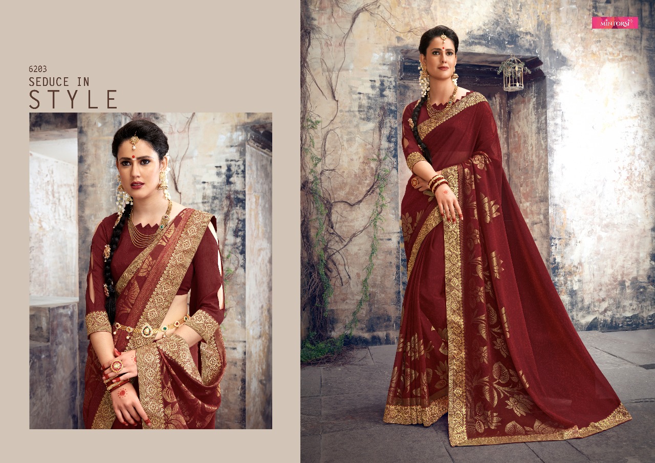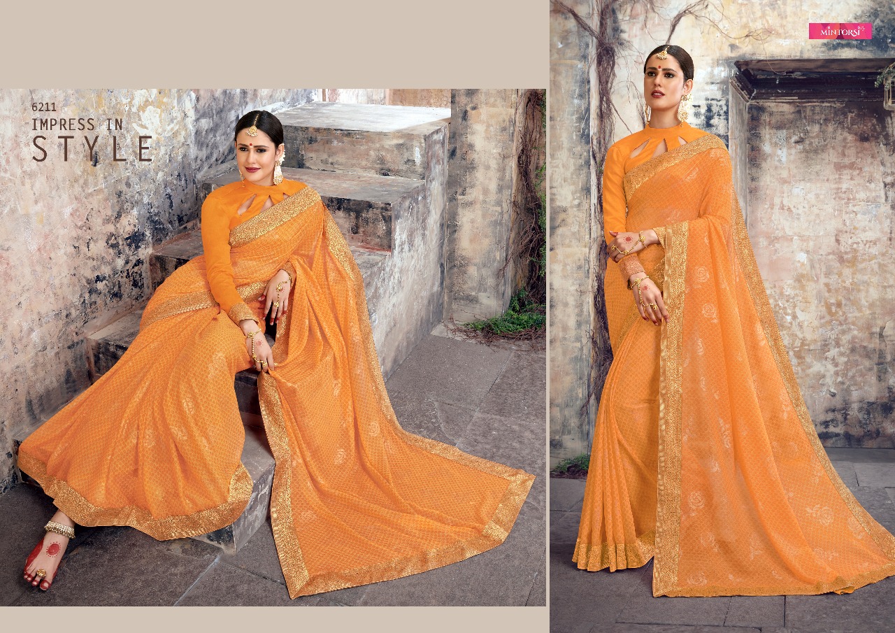 Mintorsi Harleen Designer Saree Catalogue. Fabric - Zorgett. Rate -725 per Pcs. Set to set . GST 5 Percent Extra. Delivery-09-08-18. Book your order |