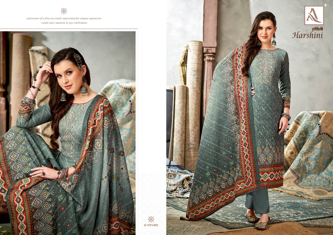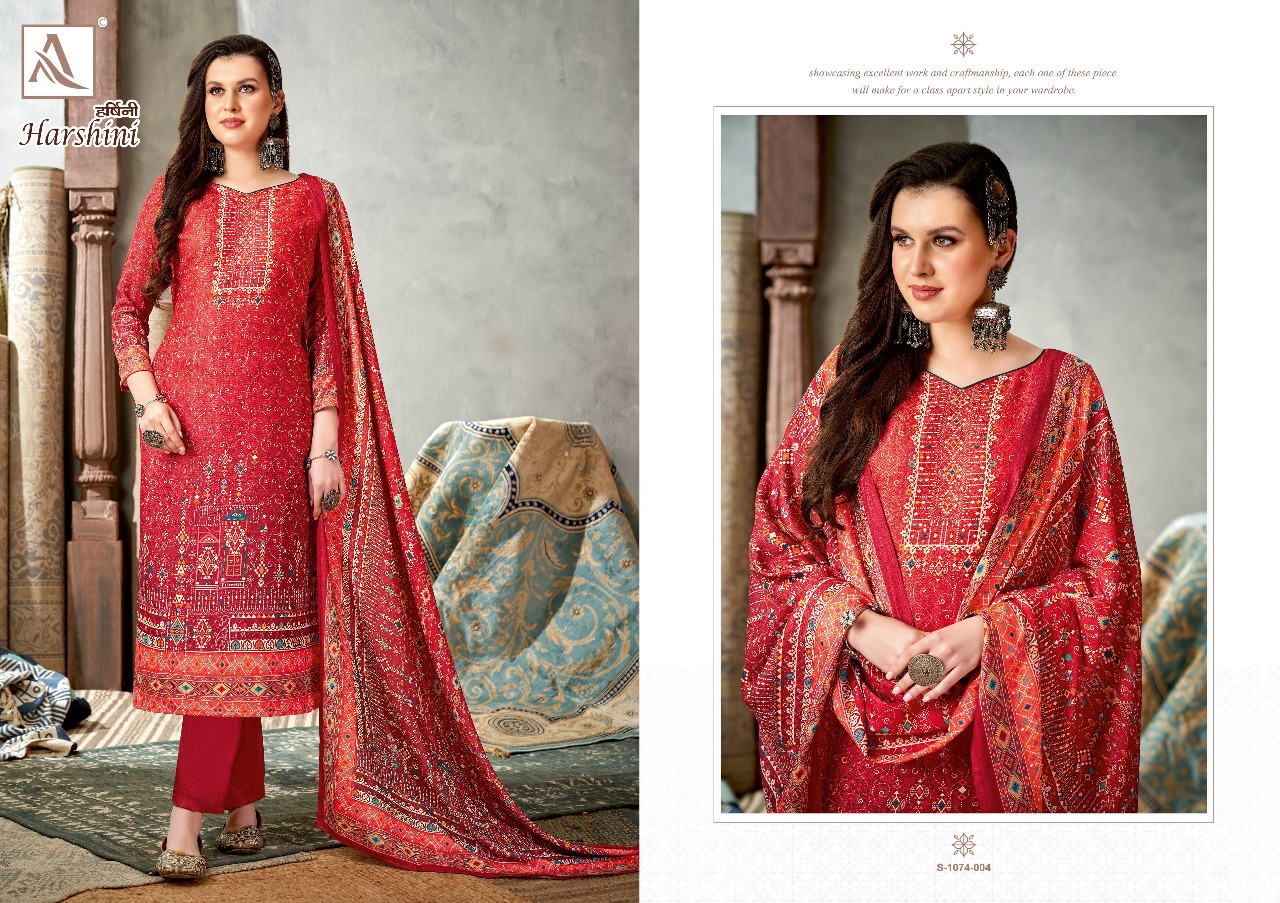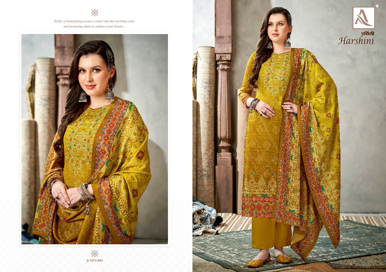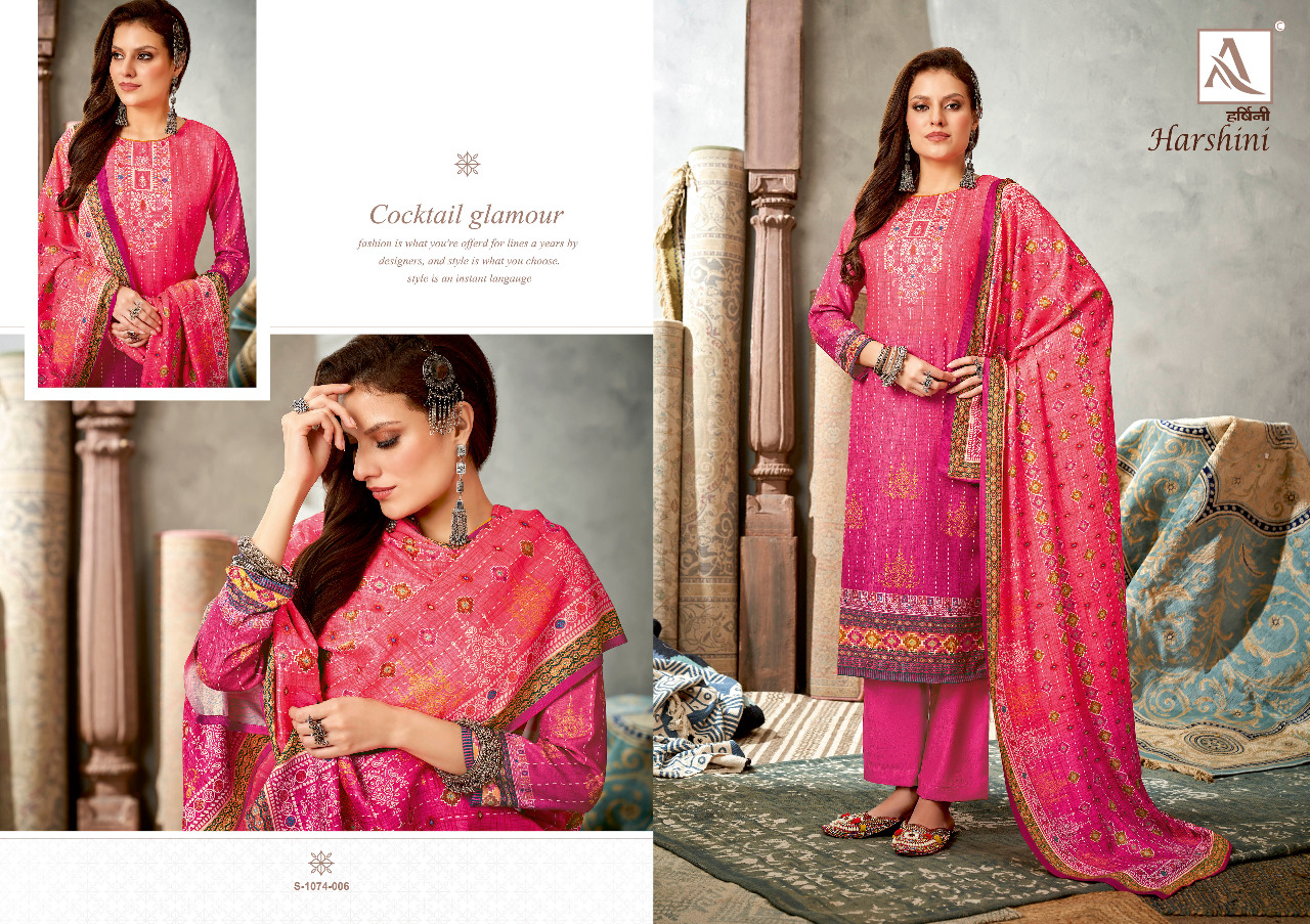 Buy Online Harshini By Alok Suit Pashmina Suit Wholesale Supplier Traders In Surat 8 Pcs of Full Catalogue at Wholesale Price. Looking for Harshini By Alok Suit Pashmina Suit Wholesale Supplier Traders In Surat Full Catalouge at Best Price? Buy Now Harshini By Alok Suit Pashmina Suit Wholesale Supplier Traders In Surat at Wholesale Rate of Rs 4888 with Total 8 Pcs from authroized dealer and supplier of Brand. Cost of Each piece is just only Rs 611 which is very low and affordable price to resale the product in your retail store ,This is Surat based Wholesale Supplier & Dealer of Brand. Click on Brand name to Know more about Brand's products.Call or Whatsapp on 9898838984 for booking or enquiry