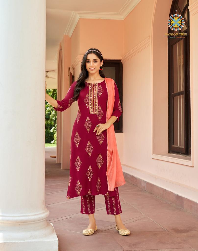 Harvi Vol 1 By Passion Tree Straight Kurti With Pant And Dupatta Concept Single Avilable Wholesaler Supplier Surat