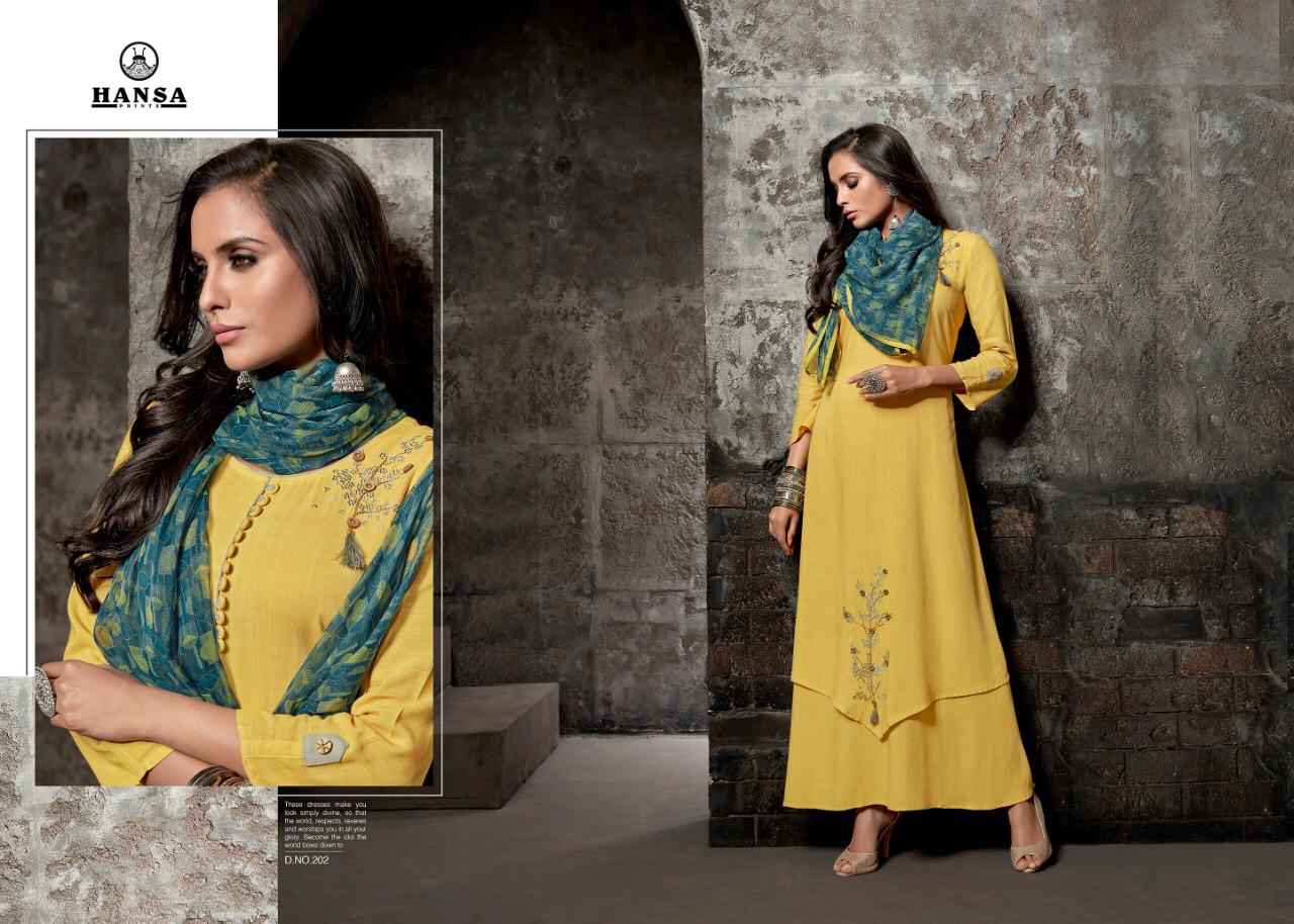 Buy Online Haskala Vol 2 By Hansa 201 Series Fancy Gown Style Kurti Catlog Wholesale Dealer Surat 5 Pcs of Full Catalogue at Wholesale Price. Looking for Haskala Vol 2 By Hansa 201 Series Fancy Gown Style Kurti Catlog Wholesale Dealer Surat Full Catalouge at Best Price? Buy Now Haskala Vol 2 By Hansa 201 Series Fancy Gown Style Kurti Catlog Wholesale Dealer Surat at Wholesale Rate of Rs 0 with Total 5 Pcs from authroized dealer and supplier of Brand. Cost of Each piece is just only Rs 0 which is very low and affordable price to resale the product in your retail store ,This is Surat based Wholesale Supplier & Dealer of Brand. Click on Brand name to Know more about Brand's products.Call or Whatsapp on 9898838984 for booking or enquiry