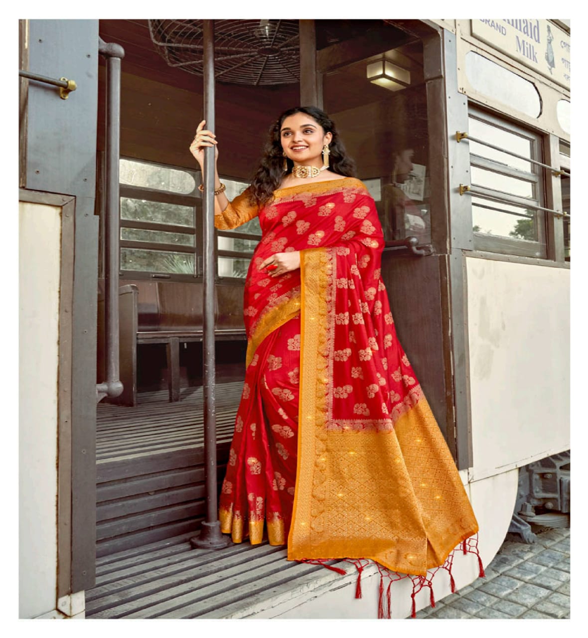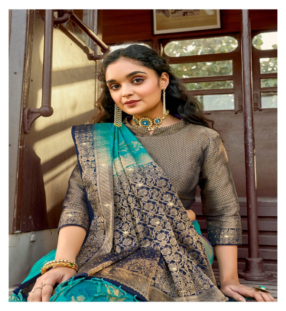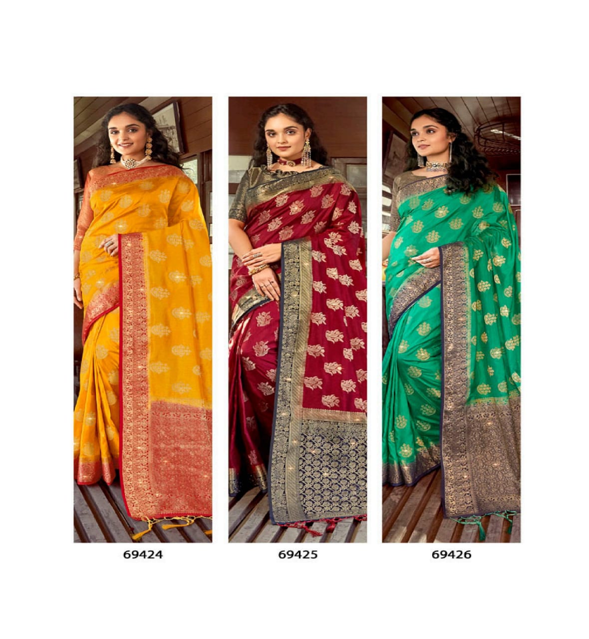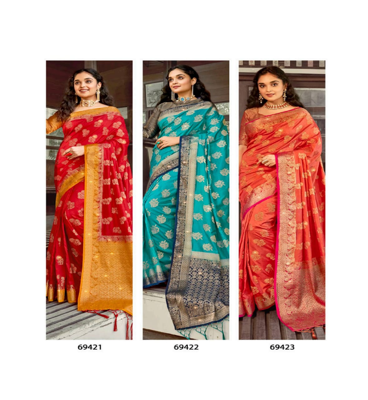 Catalog :-HASTKALA By Lifestyle Volume :-5 Fabric :-NYLONE BUTTI SILK SAREE Packing :-BOX Price :- 1385 per pcs . Set to set . GST 5 Percent Extra Cut/Length :-6.40 NAYLON SILK RICH PALLU BUTTI DIAMOND WORK FANCY SAREE. Delivery from tomorrow |