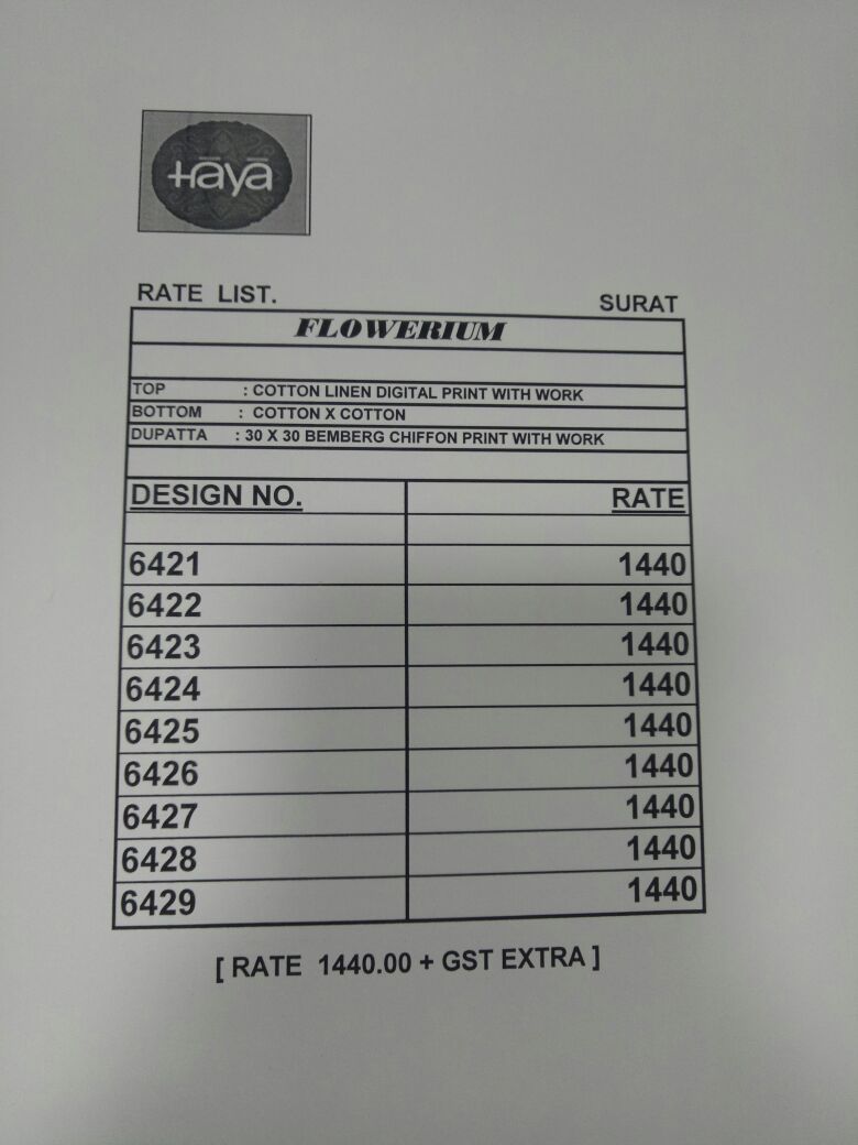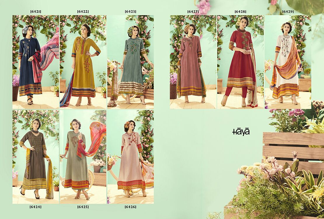 Buy Online Haya Flowerium 6421 Series Cotton Lilan Digital Print Suits 9 Pcs of Full Catalogue at Wholesale Price. Looking for Haya Flowerium 6421 Series Cotton Lilan Digital Print Suits Full Catalouge at Best Price? Buy Now Haya Flowerium 6421 Series Cotton Lilan Digital Print Suits at Wholesale Rate of Rs 12960 with Total 9 Pcs from authroized dealer and supplier of HAYA Brand. Cost of Each piece is just only Rs 1440 which is very low and affordable price to resale the product in your retail store ,This is Surat based Wholesale Supplier & Dealer of HAYA Brand. Click on Brand name to Know more about HAYA Brand's products.Call or Whatsapp on 9898838984 for booking or enquiry