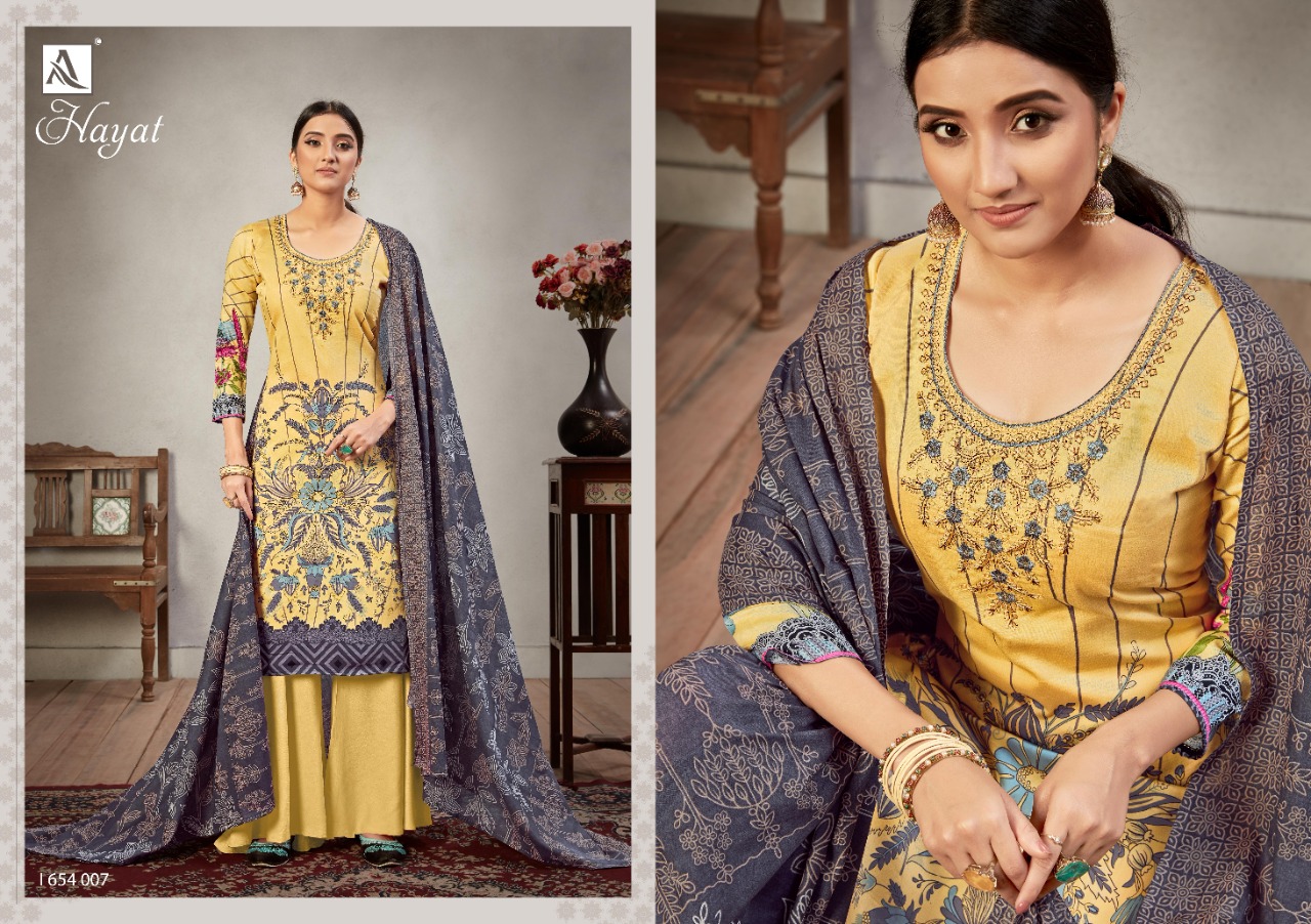 Buy Online Hayat By Alok Suit Dress Materials Wholesale Supplier And Dealer Gujarat 8 Pcs of Full Catalogue at Wholesale Price. Looking for Hayat By Alok Suit Dress Materials Wholesale Supplier And Dealer Gujarat Full Catalouge at Best Price? Buy Now Hayat By Alok Suit Dress Materials Wholesale Supplier And Dealer Gujarat at Wholesale Rate of Rs 5400 with Total 8 Pcs from authroized dealer and supplier of Brand. Cost of Each piece is just only Rs 675 which is very low and affordable price to resale the product in your retail store ,This is Surat based Wholesale Supplier & Dealer of Brand. Click on Brand name to Know more about Brand's products.Call or Whatsapp on 9898838984 for booking or enquiry
