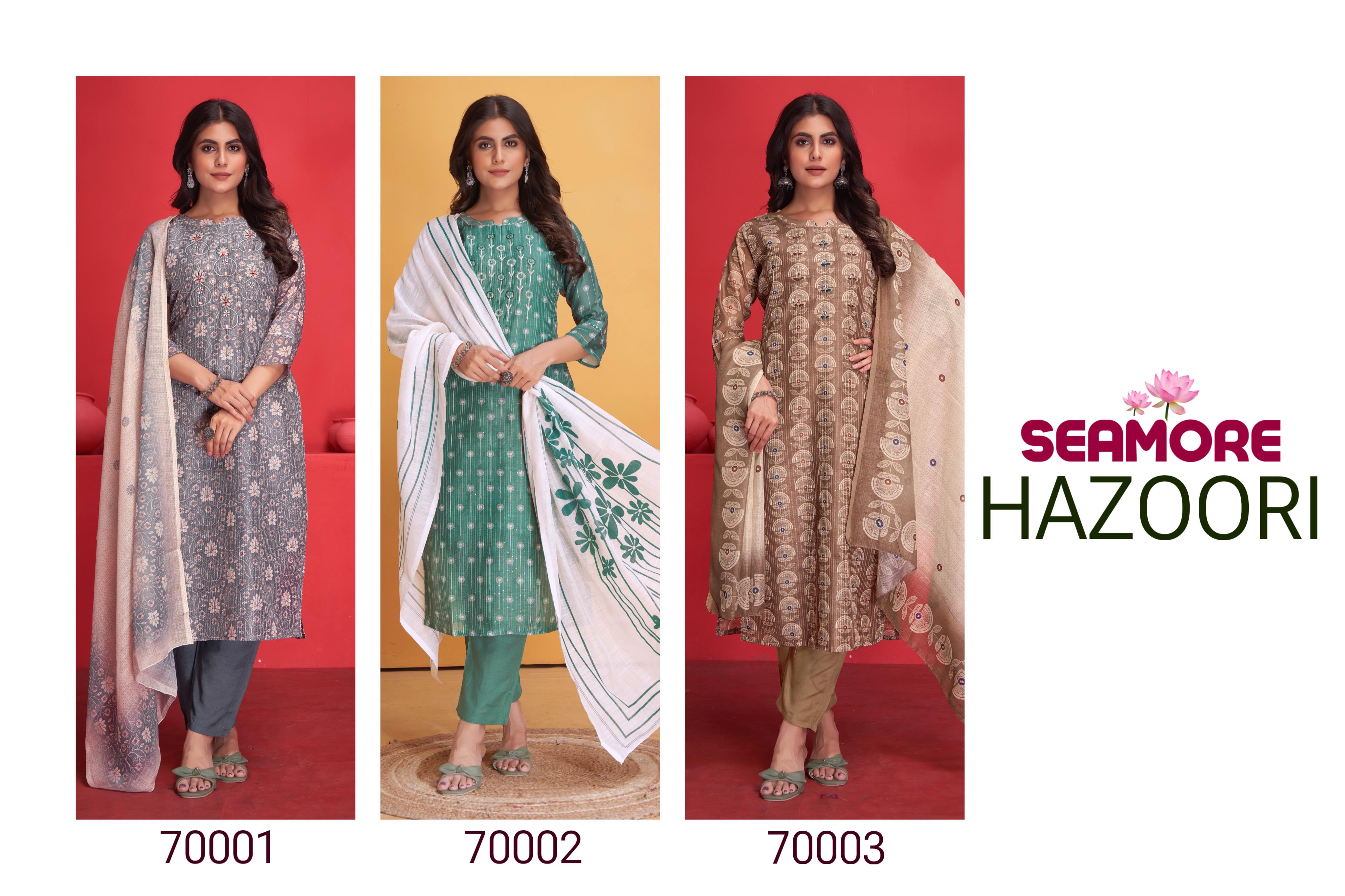 Hazoori By Seamore Fancy Kurti Bottom Duppata Collection Manufacturer Surat
