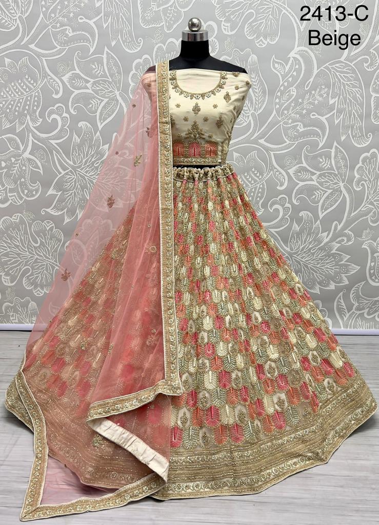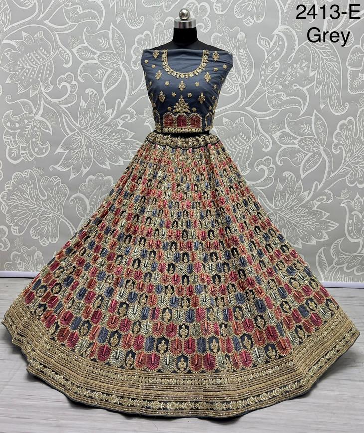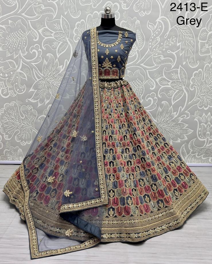 Buy Online Heavy Multi Thread 2413 Matching Embroidery Bridal New Lehenga Choli 5 Pcs of Full Catalogue at Wholesale Price. Looking for Heavy Multi Thread 2413 Matching Embroidery Bridal New Lehenga Choli Full Catalouge at Best Price? Buy Now Heavy Multi Thread 2413 Matching Embroidery Bridal New Lehenga Choli at Wholesale Rate of Rs 34995 with Total 5 Pcs from authroized dealer and supplier of Brand. Cost of Each piece is just only Rs 6999 which is very low and affordable price to resale the product in your retail store ,This is Surat based Wholesale Supplier & Dealer of Brand. Click on Brand name to Know more about Brand's products.Call or Whatsapp on 9898838984 for booking or enquiry