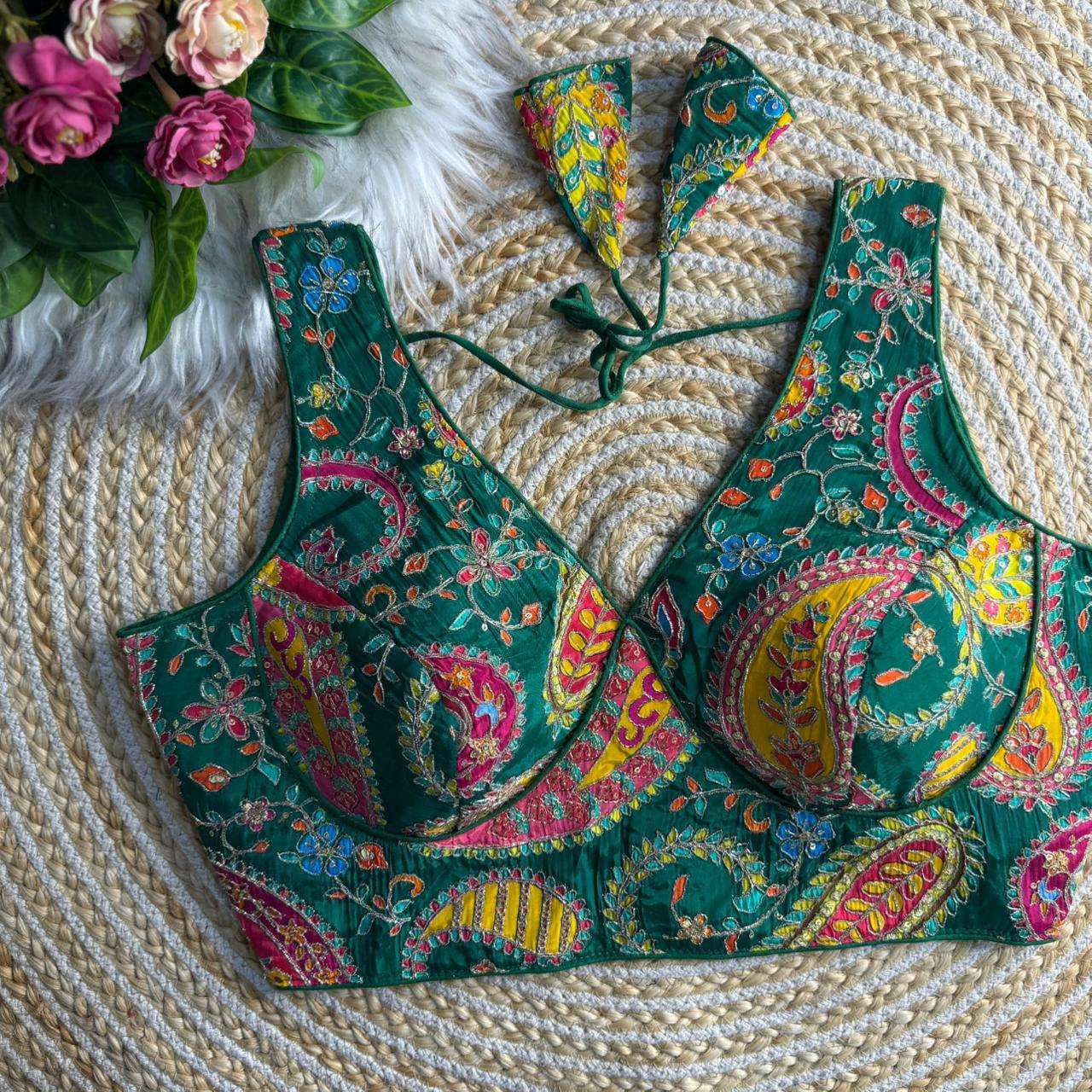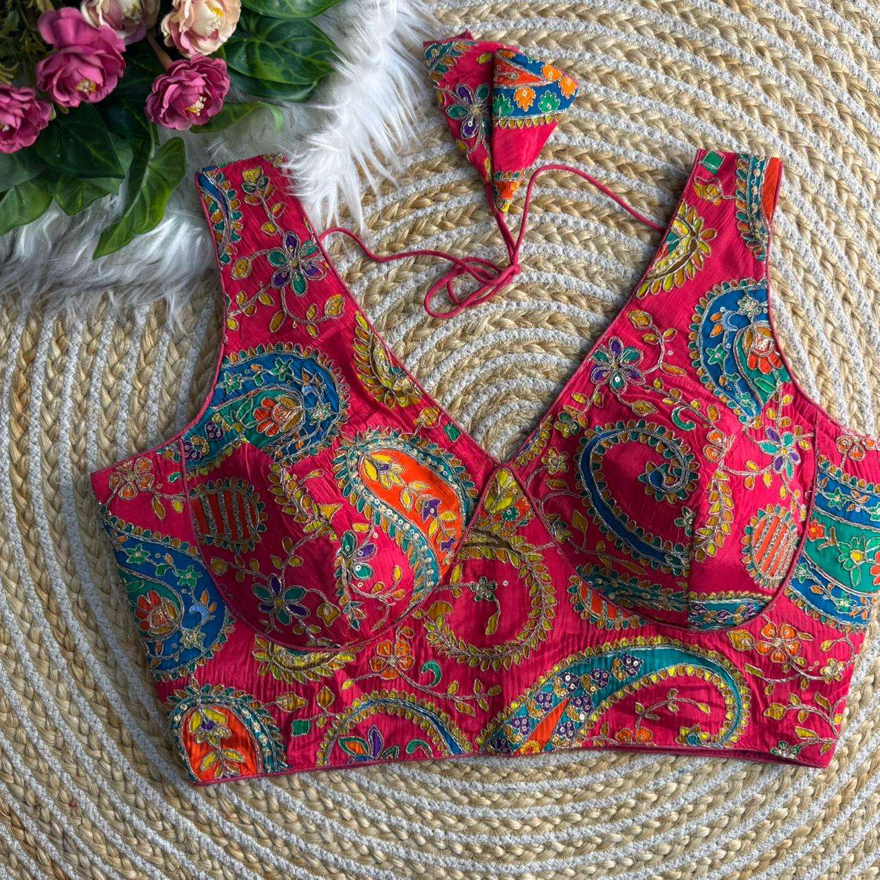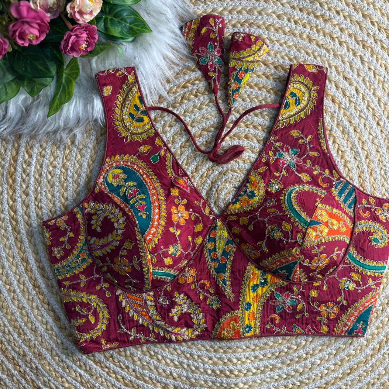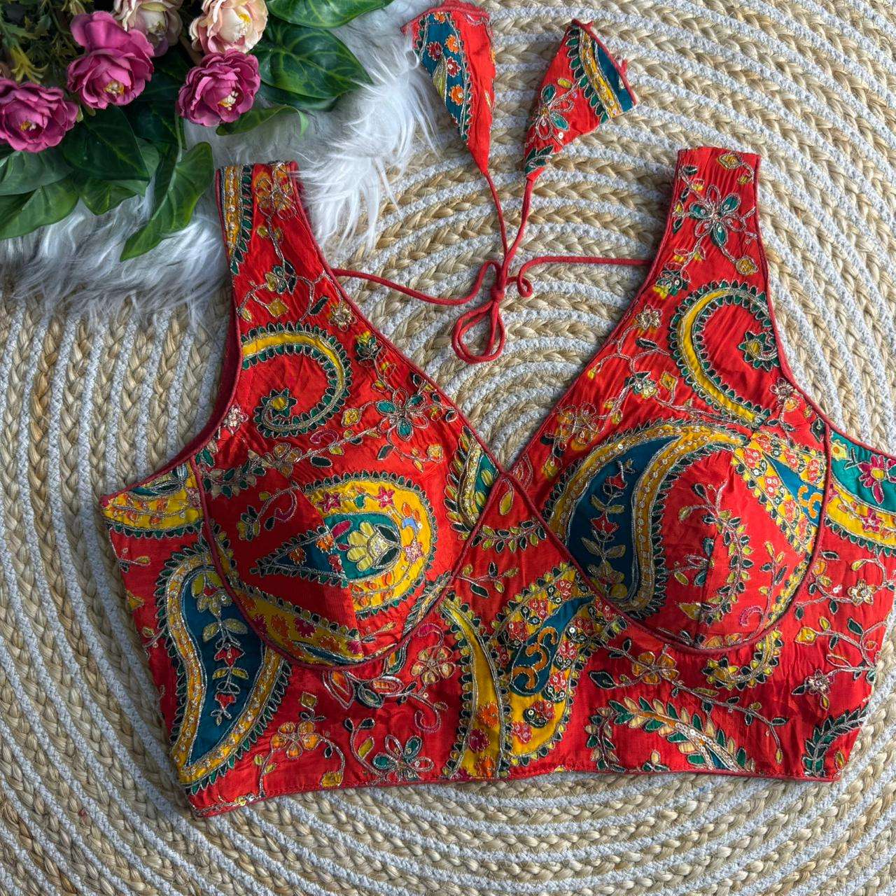 ❤️ *SABYASACHI NECK HEAVY LONG CARRY POSITION WORK BLOUSE* ♥️