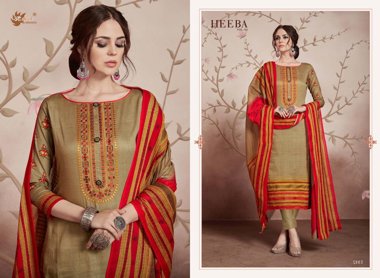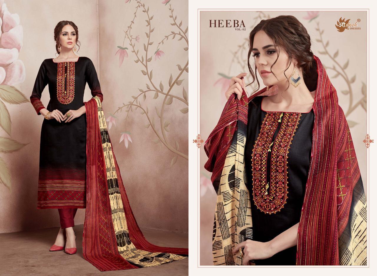 Buy Online Heeba 2 By Aadesh Nx Cotton Printed Embroidered Designer Suits Wholesale Supplier Gujarat 8 Pcs of Full Catalogue at Wholesale Price. Looking for Heeba 2 By Aadesh Nx Cotton Printed Embroidered Designer Suits Wholesale Supplier Gujarat Full Catalouge at Best Price? Buy Now Heeba 2 By Aadesh Nx Cotton Printed Embroidered Designer Suits Wholesale Supplier Gujarat at Wholesale Rate of Rs 5000 with Total 8 Pcs from authroized dealer and supplier of AADESH NX Brand. Cost of Each piece is just only Rs 625 which is very low and affordable price to resale the product in your retail store ,This is Surat based Wholesale Supplier & Dealer of AADESH NX Brand. Click on Brand name to Know more about AADESH NX Brand's products.Call or Whatsapp on 9898838984 for booking or enquiry