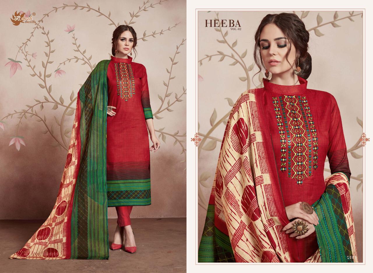 HEEBA-2 By AADESH NX RATE ? - 625/- Top ?-Pure cotton print with embroidery Bottom- semilawn 2.5 mtr Duptta- cotton mal -mal Packed in ? bag Delivery - Running. Set To Set. GST 5 Percent Extra |