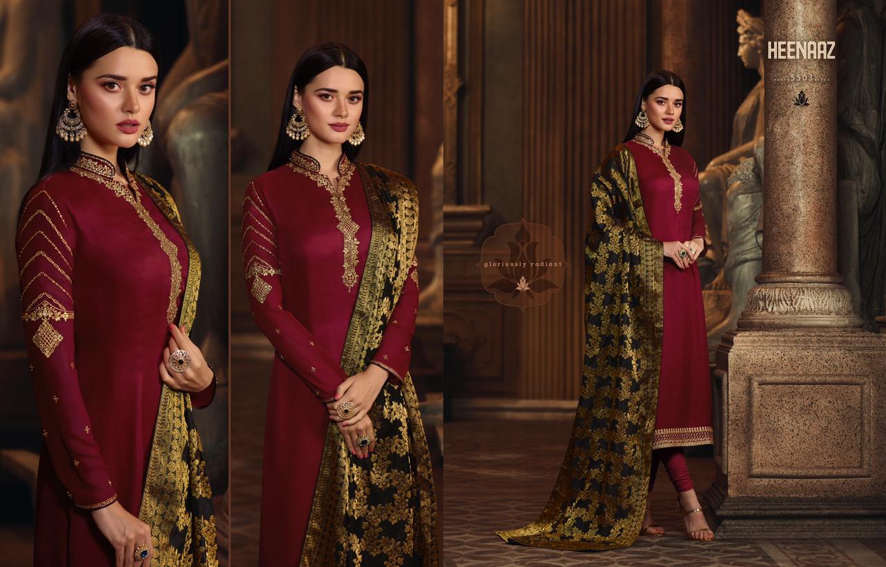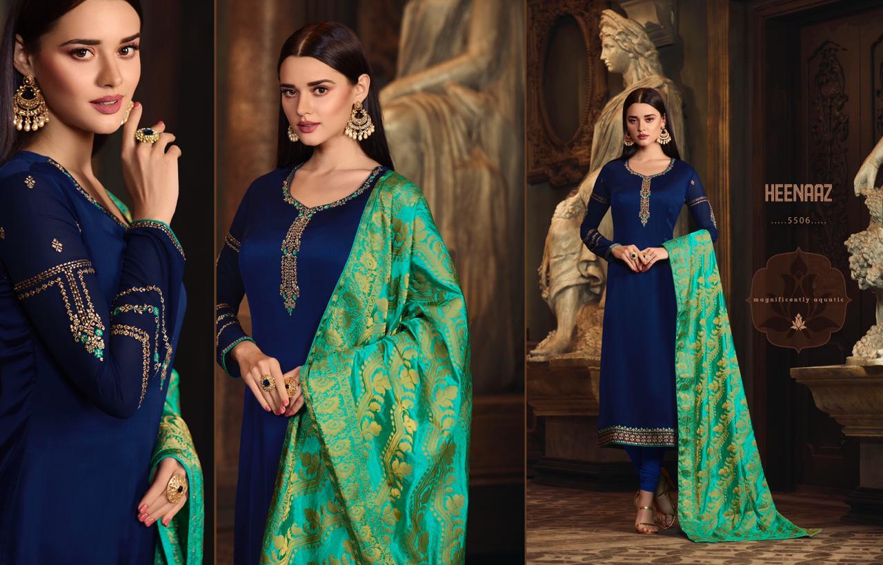 Heenaaz Vol 55 Fancy Party Wear Satin Georgette Salwar Kameez Catlog Wholesaler Surat