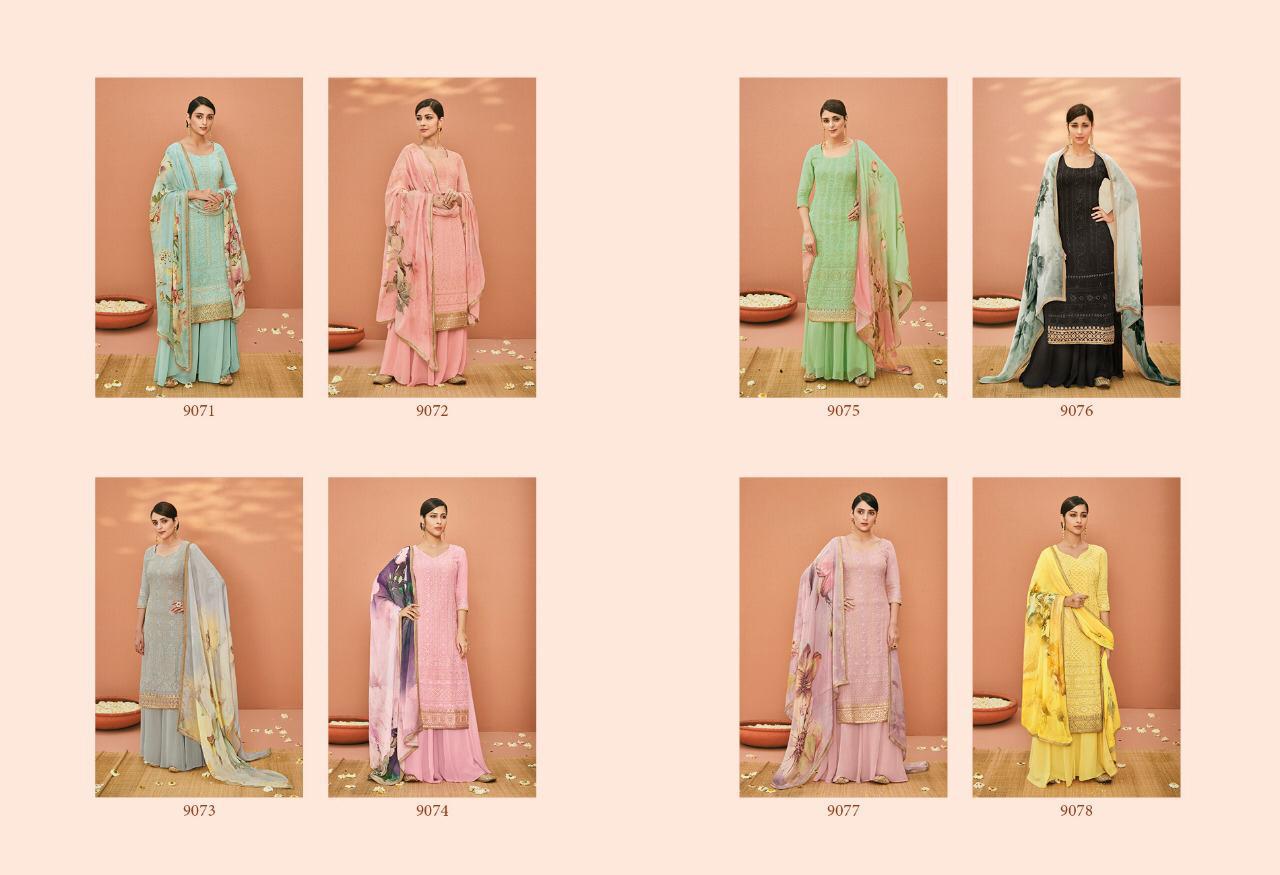 Heer 45 By Kimora Fashion Series 9071 To 9078 Chiffon Digital Printed Suits Wholesale Supplier Gujarat