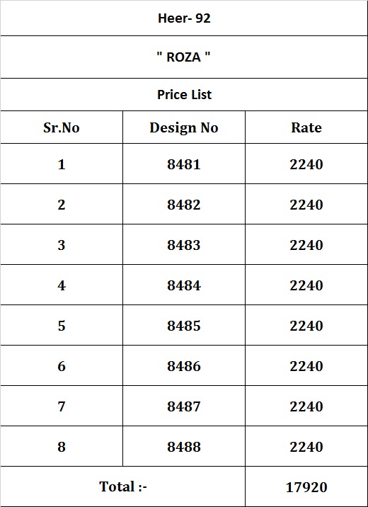 *HEER 92 BY KIMORA* *ROZA COLLECTION* *2240/-* Full set rate *SINGLE AVAILABLE rate 2340+gst* *DELIVERY BY FRIDAY* |