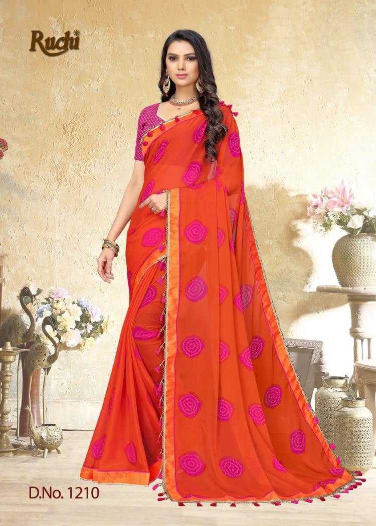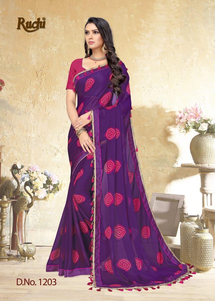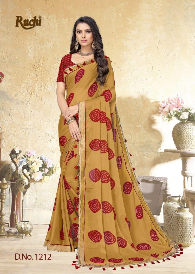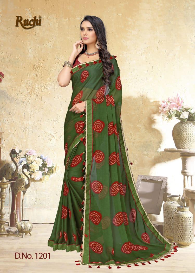 Brand - Ruchi . Type - saree. Fabric- Chiffon. Cat name - Heer D No 1201 to 1212 Rate - 650 per Pcs . Single extra 100 * set & loose & Singel * Delivery from today |
