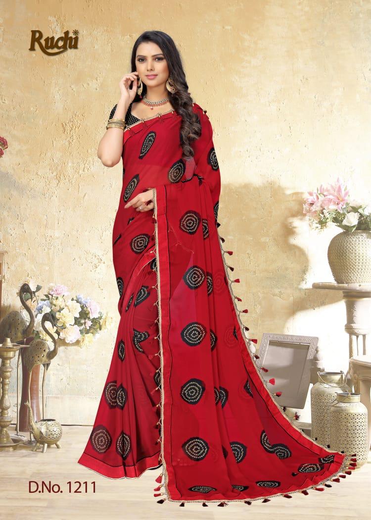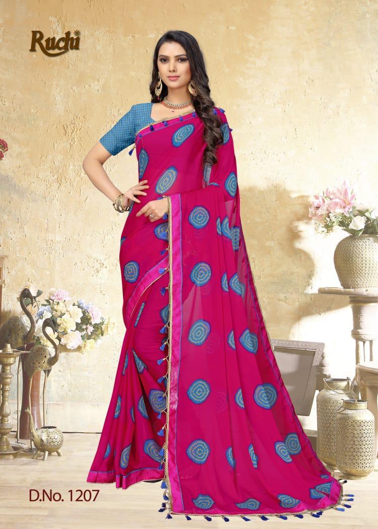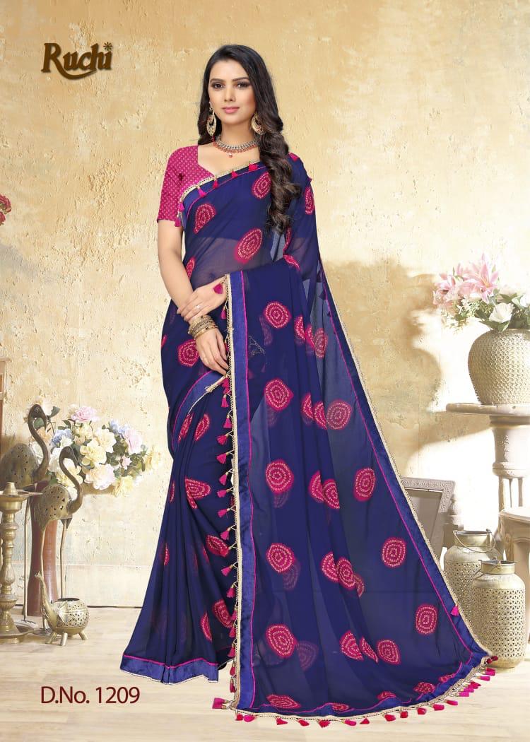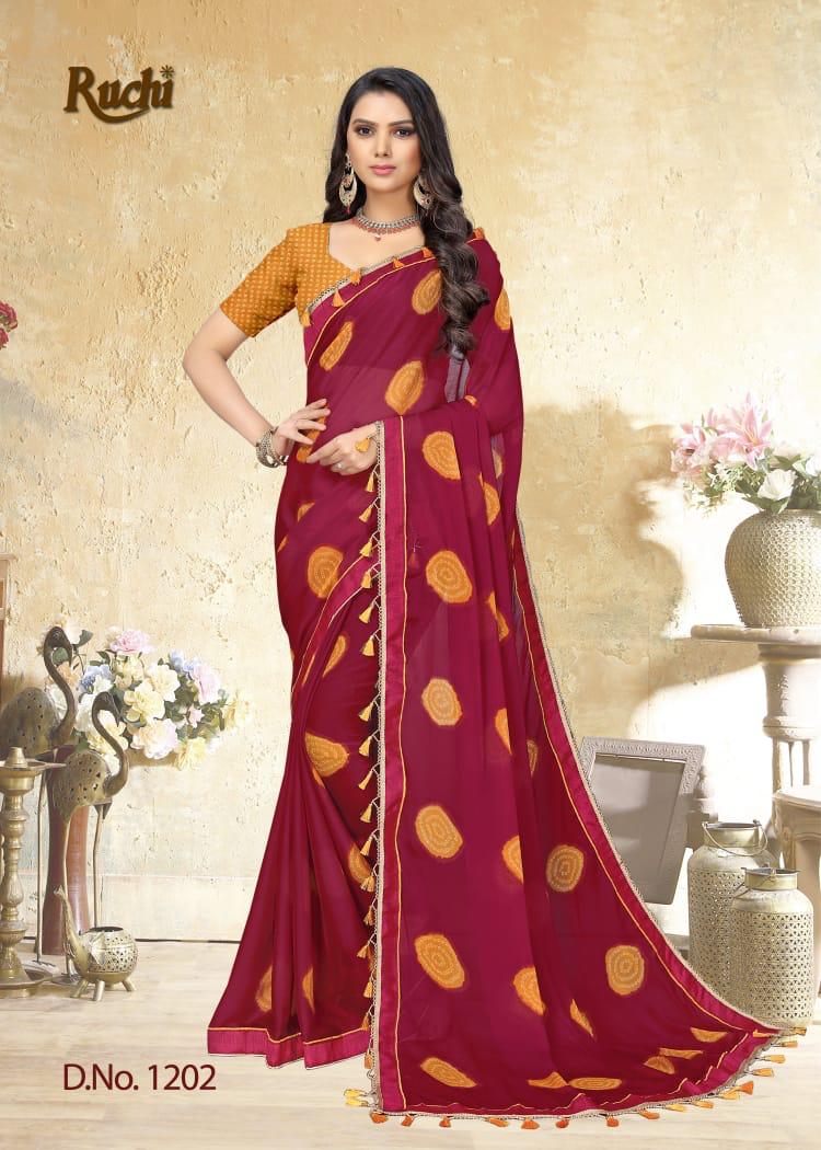 Brand - Ruchi . Type - saree. Fabric- Chiffon. Cat name - Heer D No 1201 to 1212 Rate - 650 per Pcs . Single extra 100 * set & loose & Singel * Delivery from today |