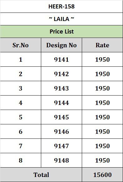 Buy Online Heer Kimora Launched Laila Pure Muslin Digital Salwar Kameez 8 Pcs of Full Catalogue at Wholesale Price. Looking for Heer Kimora Launched Laila Pure Muslin Digital Salwar Kameez Full Catalouge at Best Price? Buy Now Heer Kimora Launched Laila Pure Muslin Digital Salwar Kameez at Wholesale Rate of Rs 15600 with Total 8 Pcs from authroized dealer and supplier of Brand. Cost of Each piece is just only Rs 1950 which is very low and affordable price to resale the product in your retail store ,This is Surat based Wholesale Supplier & Dealer of Brand. Click on Brand name to Know more about Brand's products.Call or Whatsapp on 9898838984 for booking or enquiry