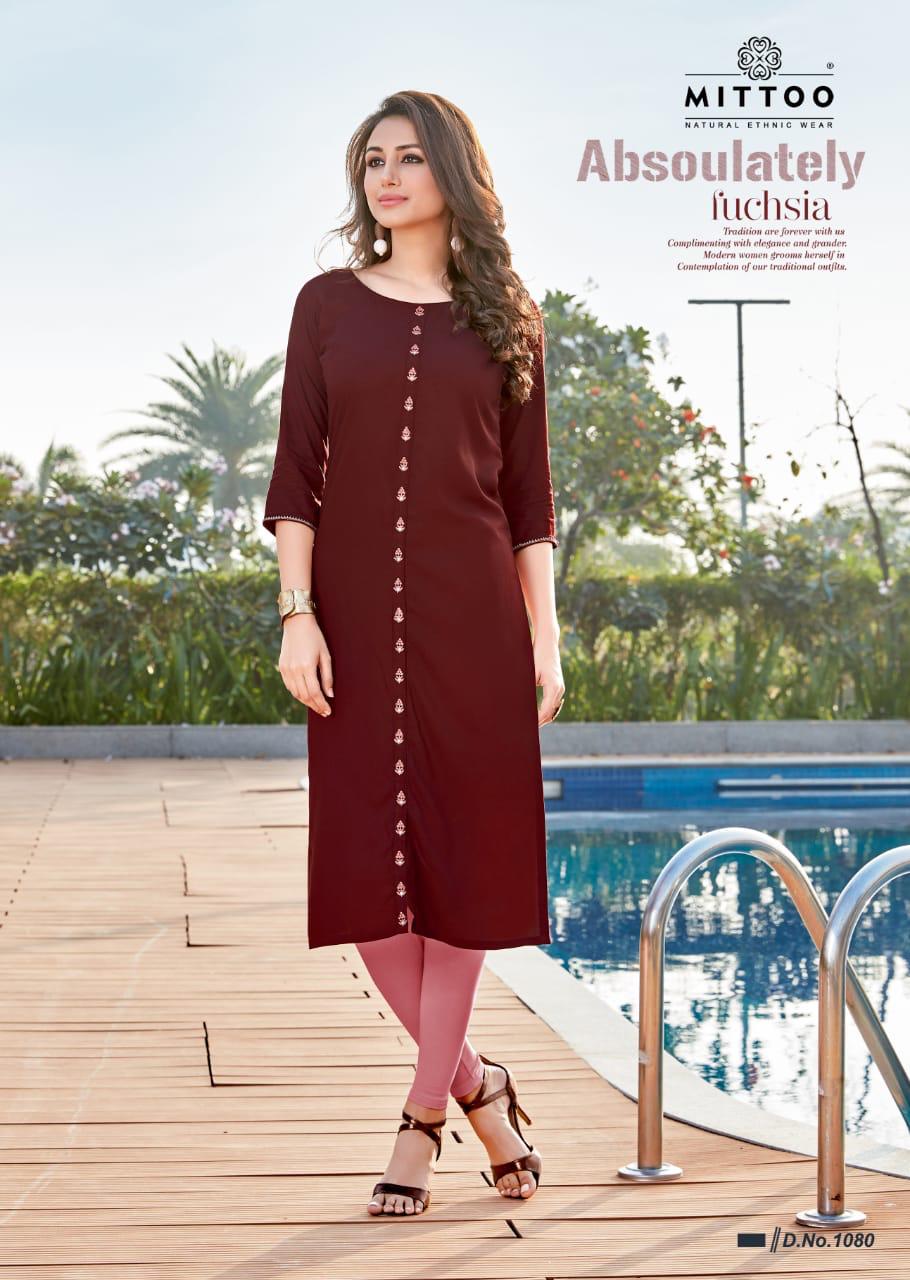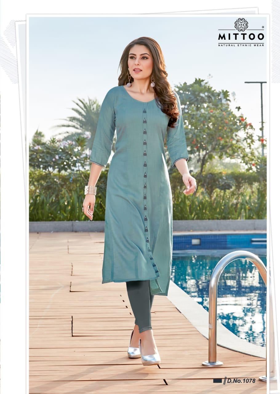 Buy Online Heer Vol 2 By Mittoo Reyon Kurtis Wholesale Supplier Surat 8 Pcs of Full Catalogue at Wholesale Price. Looking for Heer Vol 2 By Mittoo Reyon Kurtis Wholesale Supplier Surat Full Catalouge at Best Price? Buy Now Heer Vol 2 By Mittoo Reyon Kurtis Wholesale Supplier Surat at Wholesale Rate of Rs 3400 with Total 8 Pcs from authroized dealer and supplier of MITTOO Brand. Cost of Each piece is just only Rs 425 which is very low and affordable price to resale the product in your retail store ,This is Surat based Wholesale Supplier & Dealer of MITTOO Brand. Click on Brand name to Know more about MITTOO Brand's products.Call or Whatsapp on 9898838984 for booking or enquiry